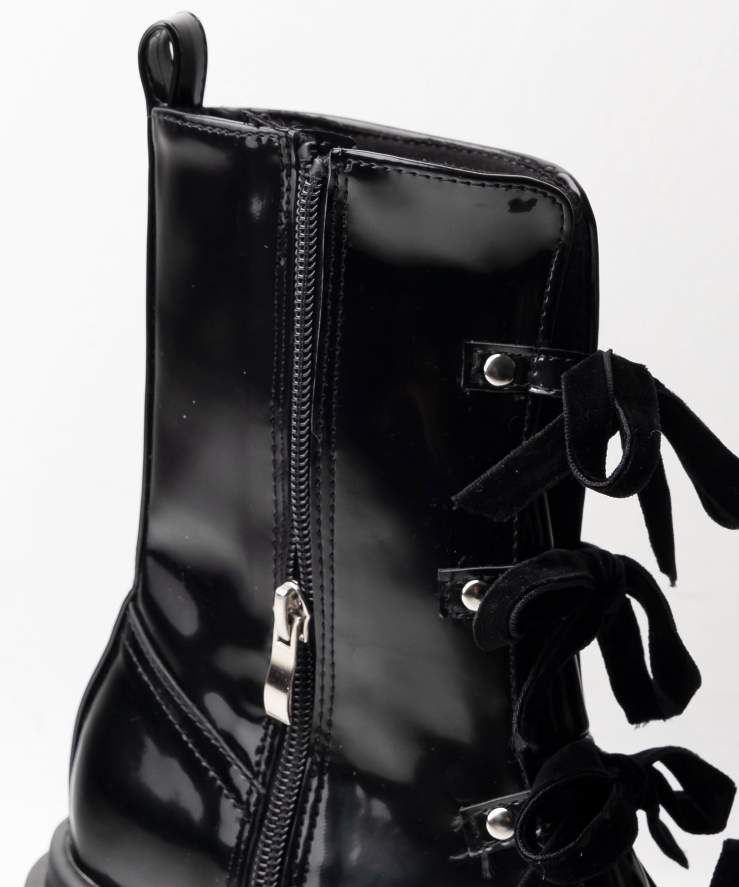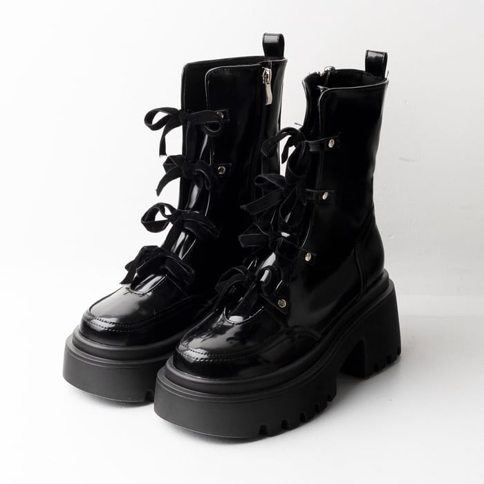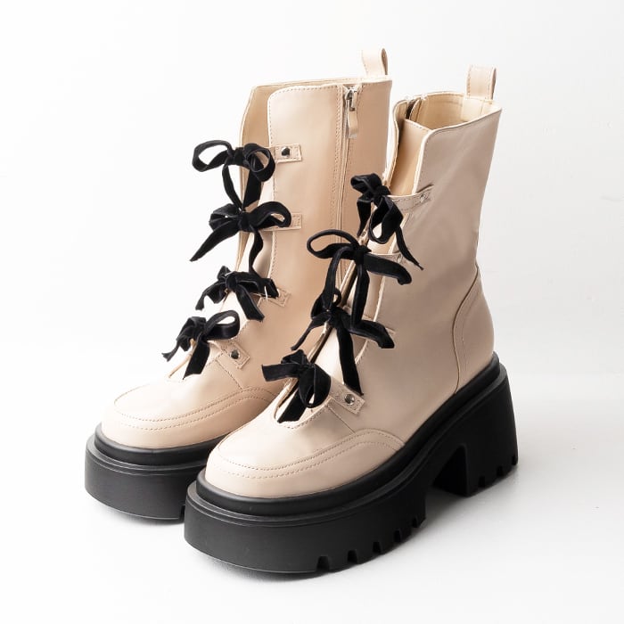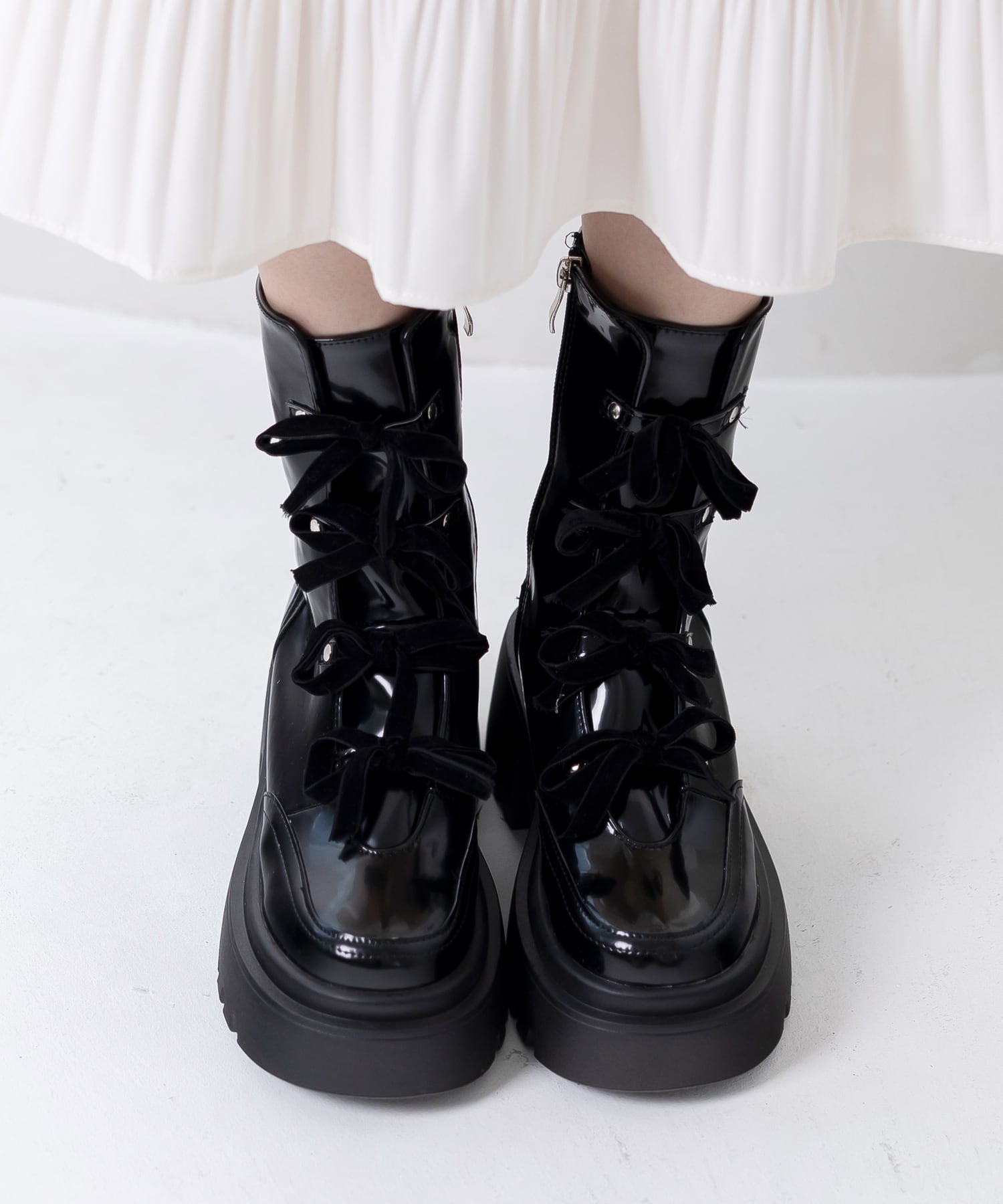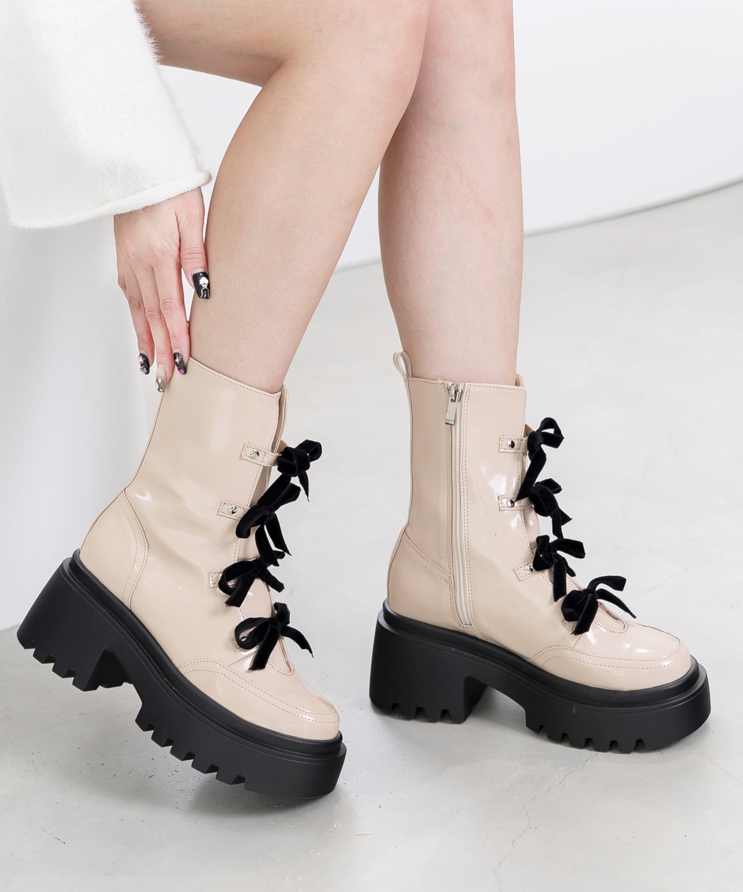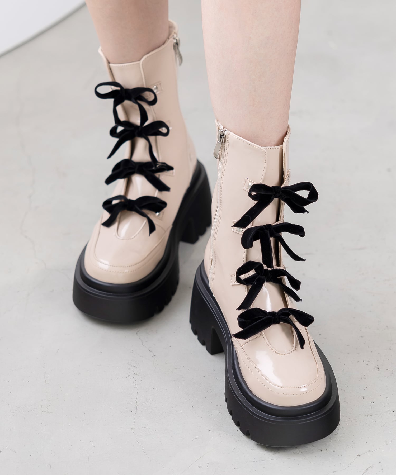 ごつごつとしたボリュームのあるソールですがリボンデザインで女性らしい印象に。