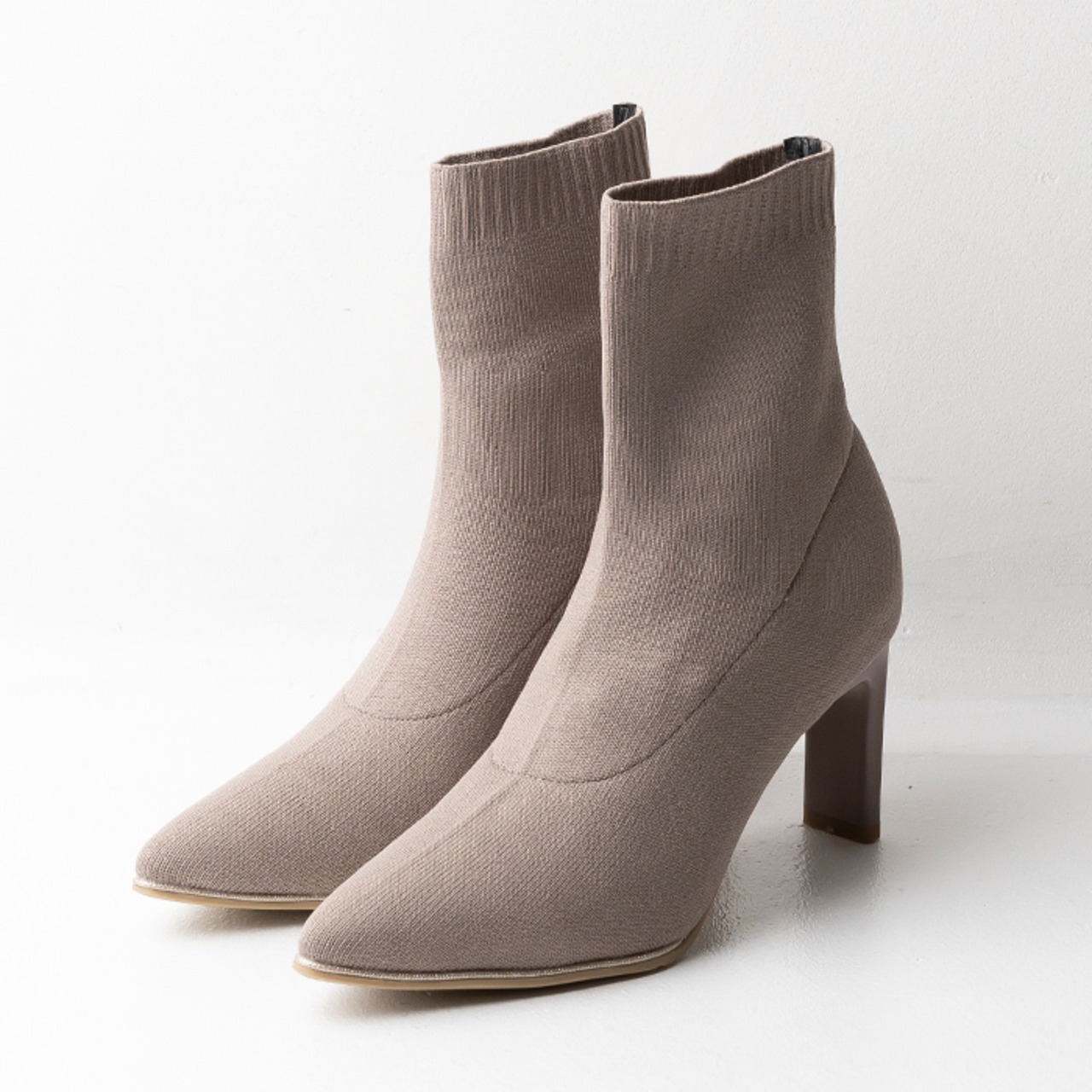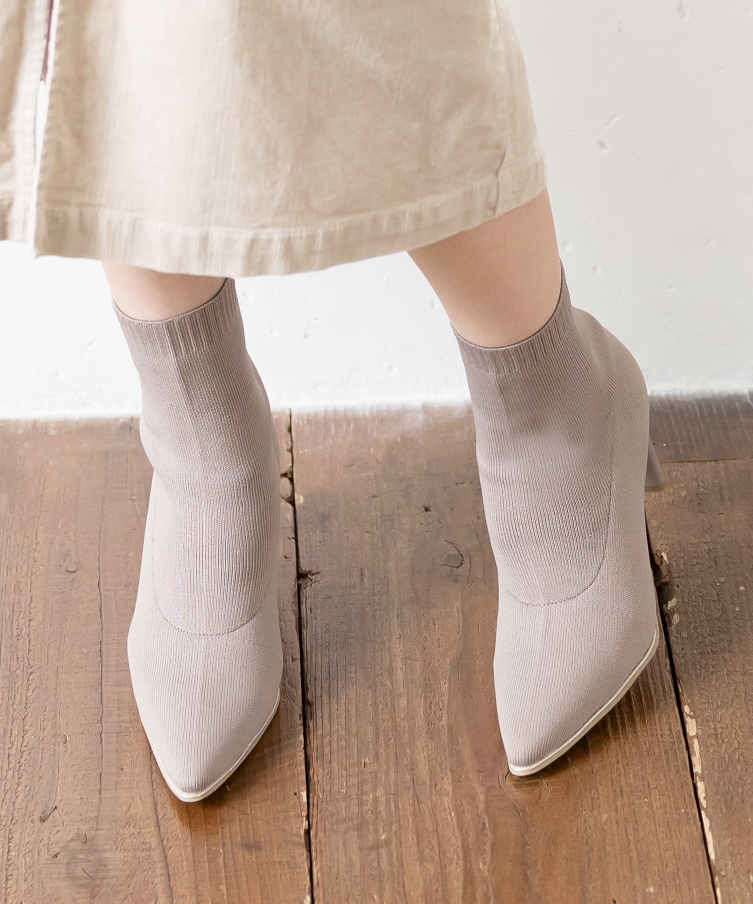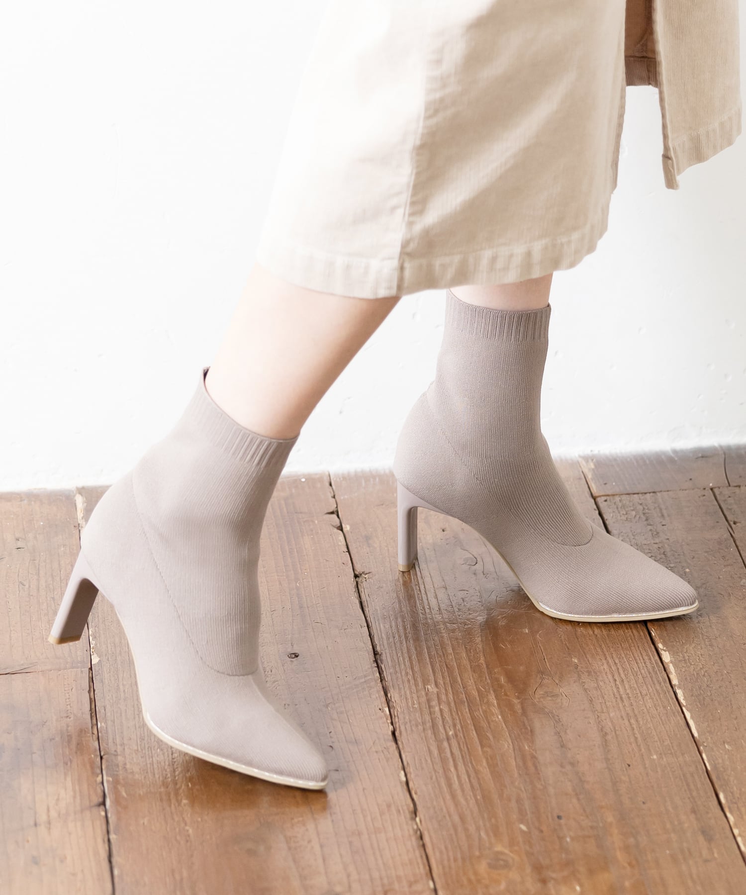 柔らかいニット素材が足首にフィットするので窮屈感なく履き心地バツグンです。平べったい変形ヒールで安定感があるのでぐらつかずに歩けます。