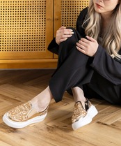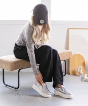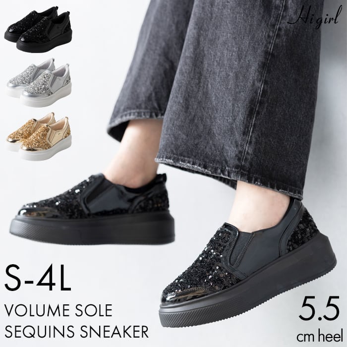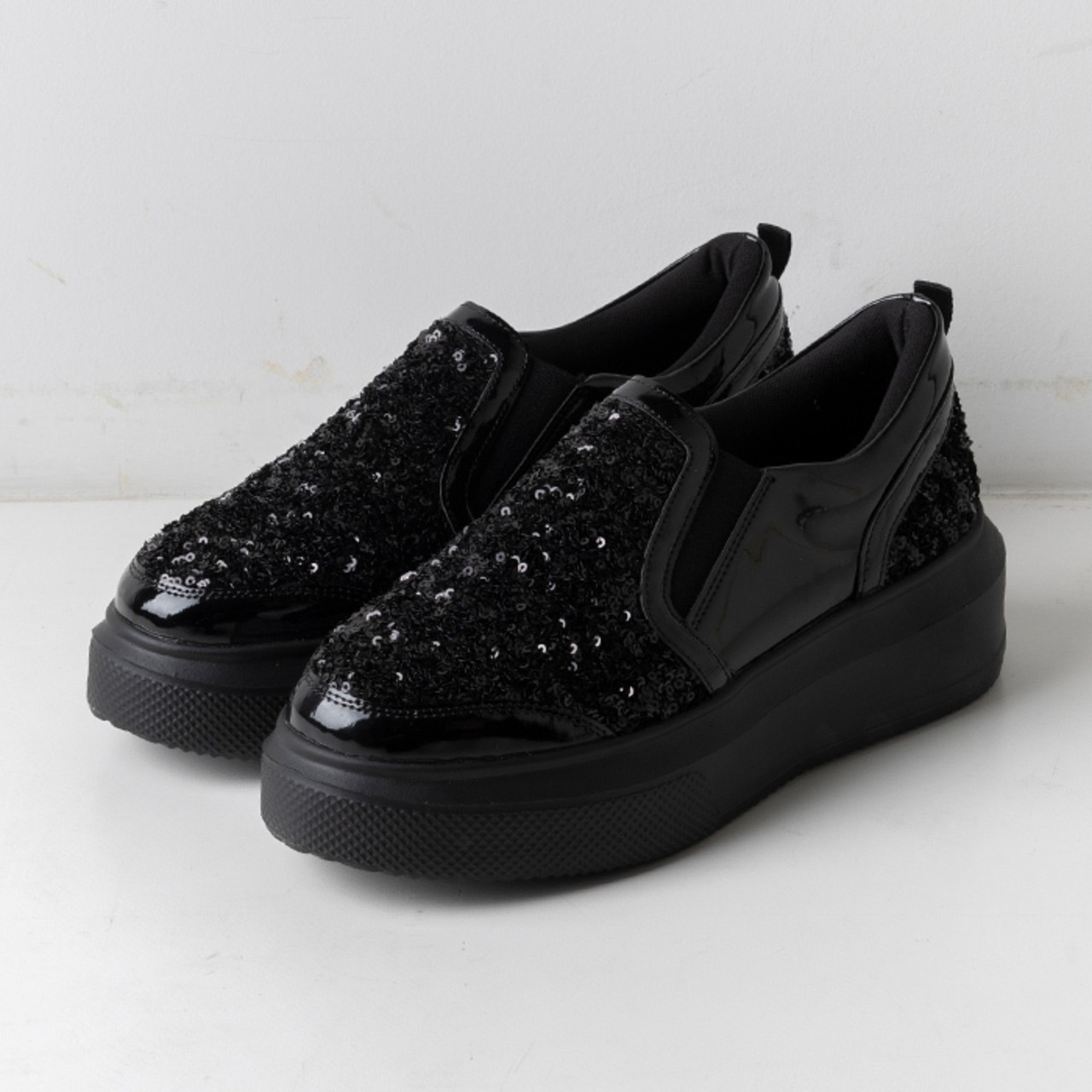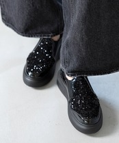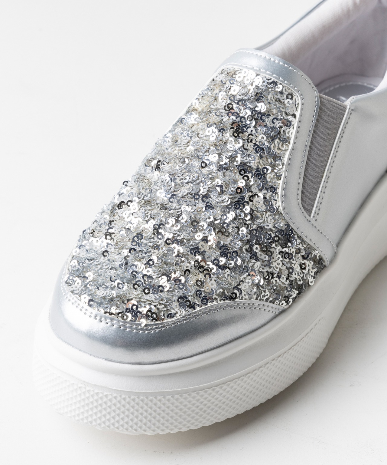 キラキラのスパンコールで存在感のある厚底スニーカー。