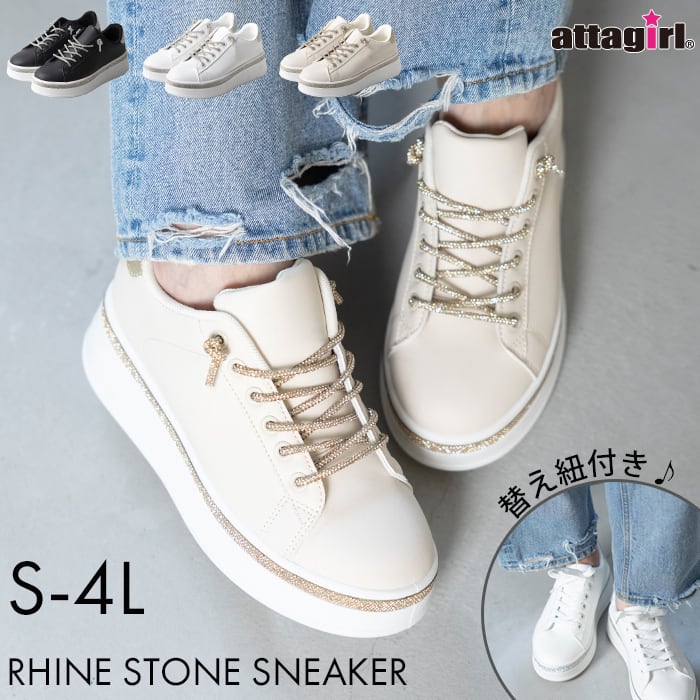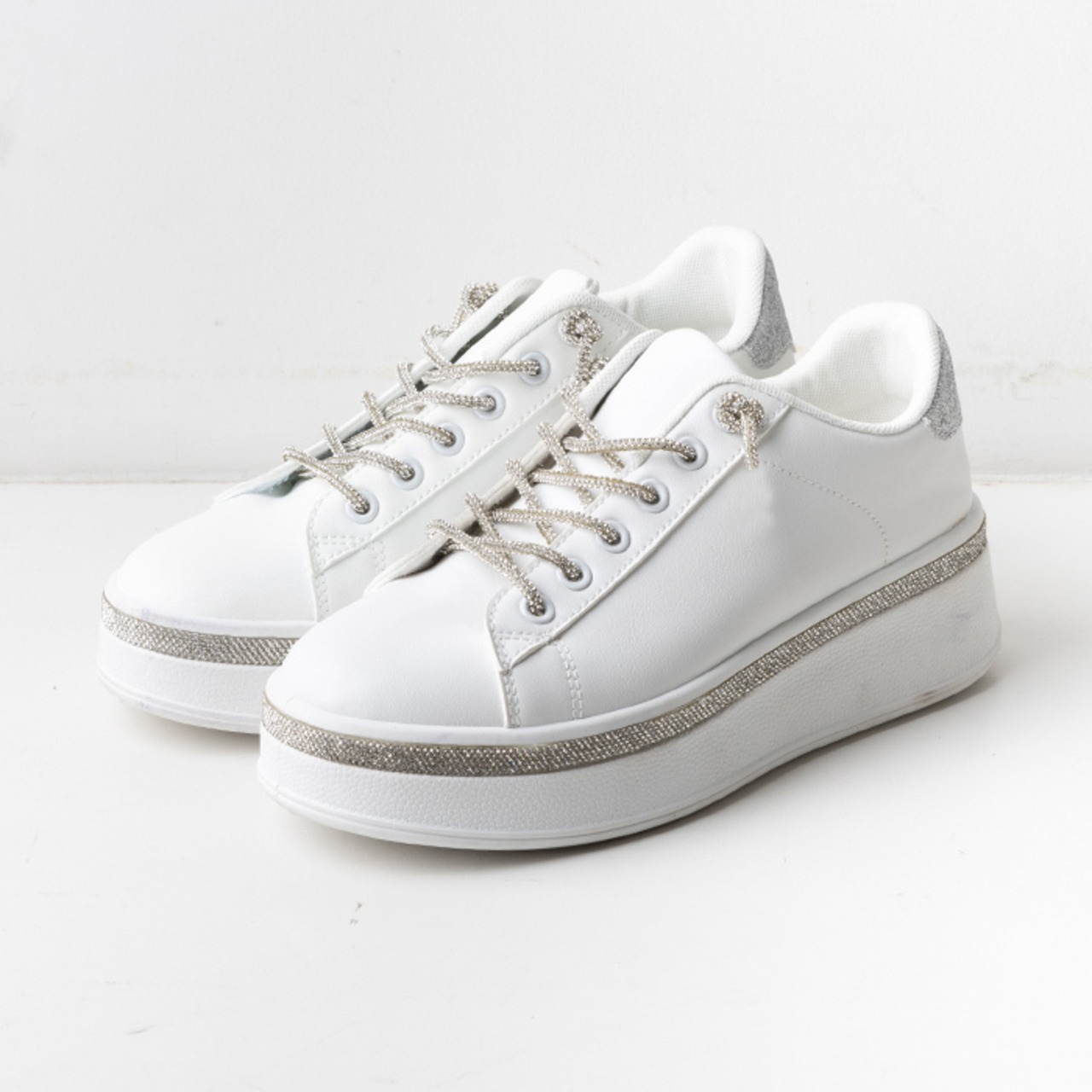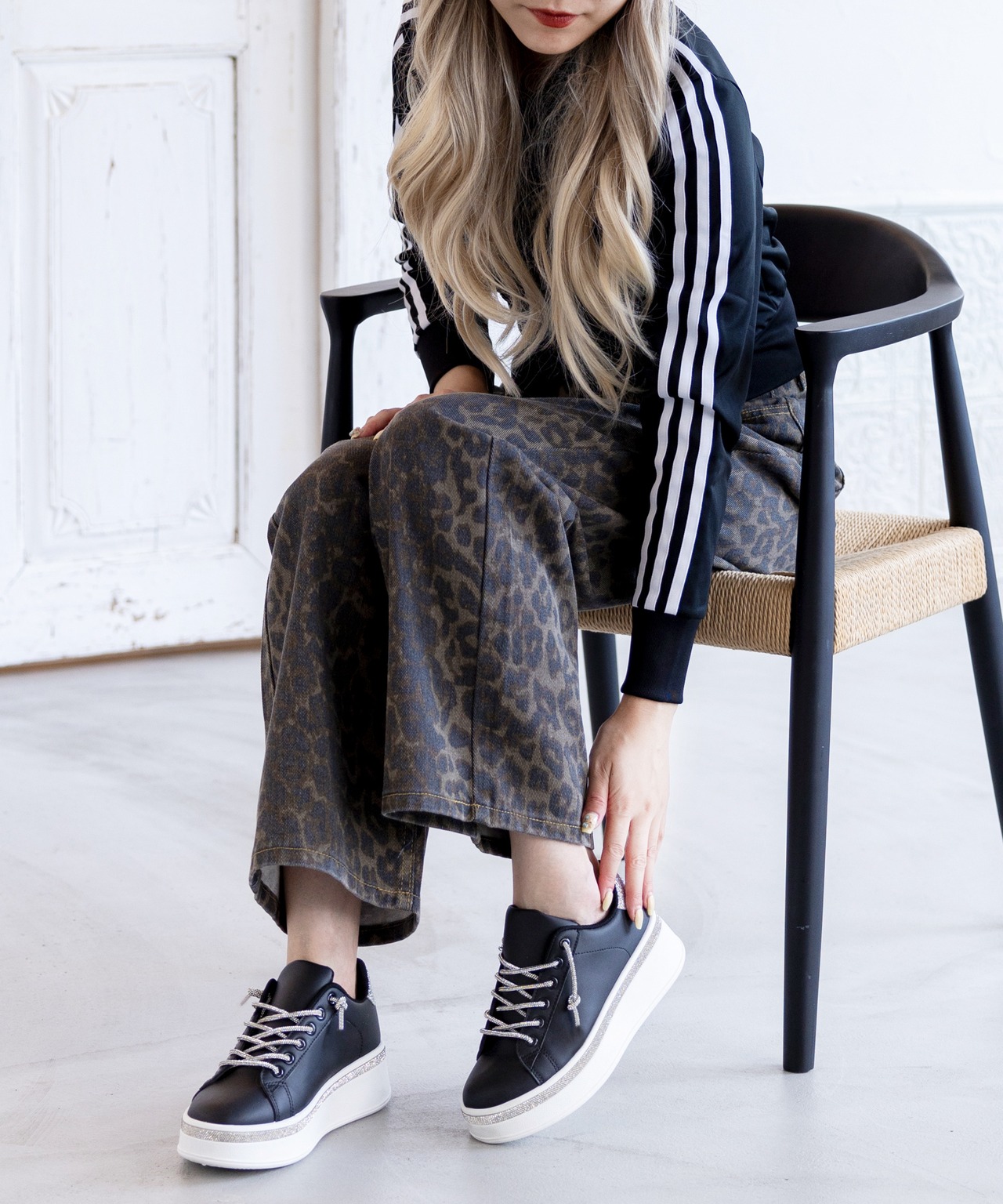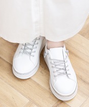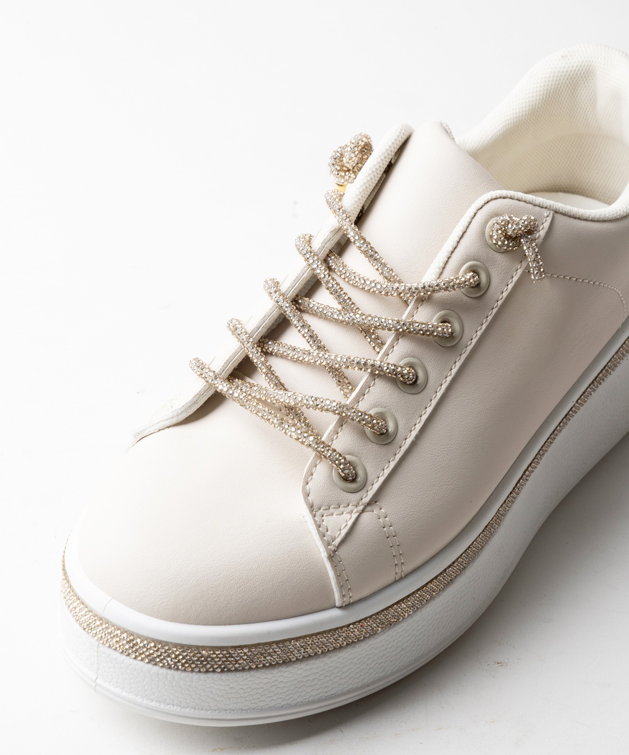 履くだけで足元に華やかさをプラスしてくれる、シンプルなスムース素材にグリッター装飾がアクセントになった厚底スニーカー。