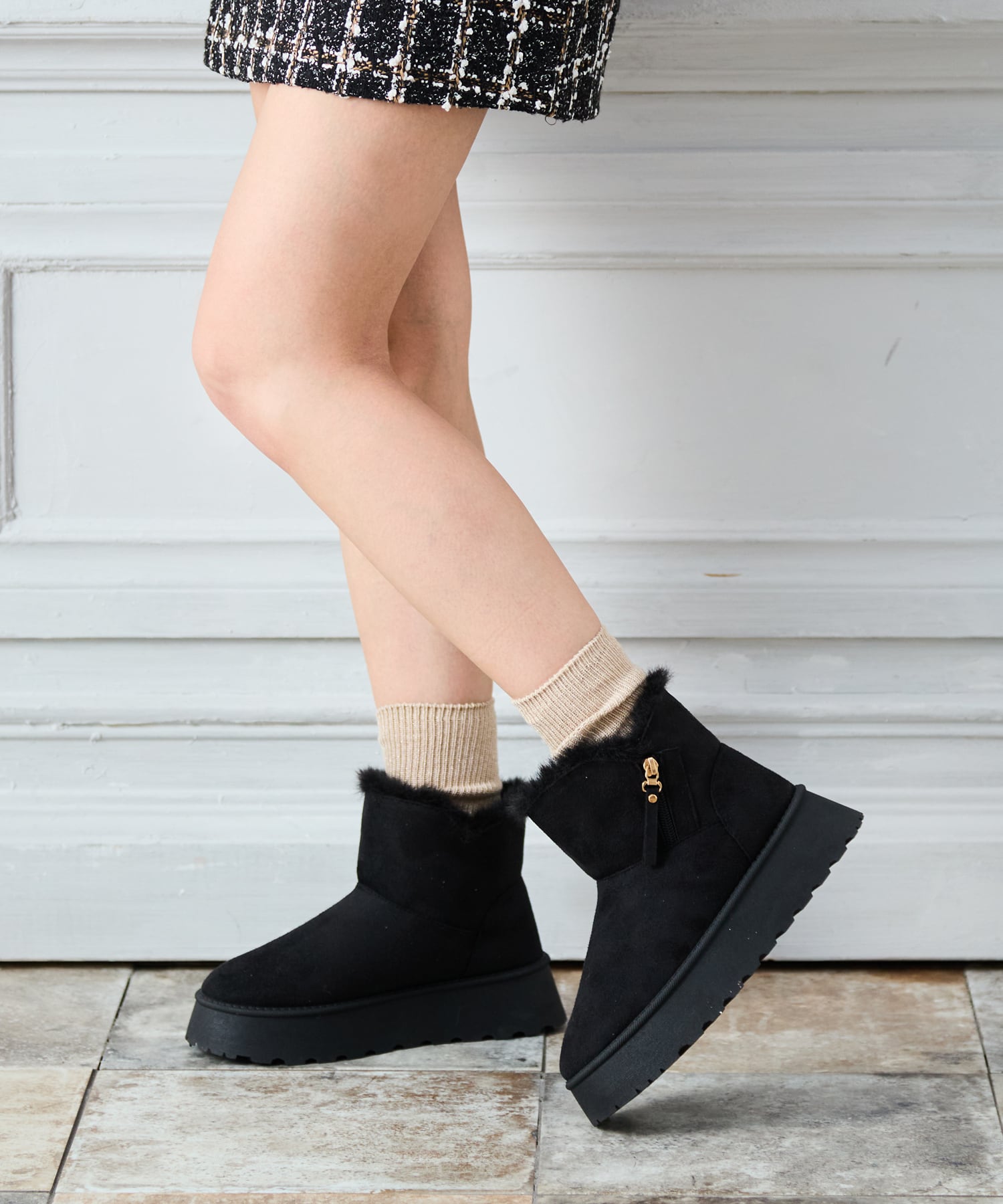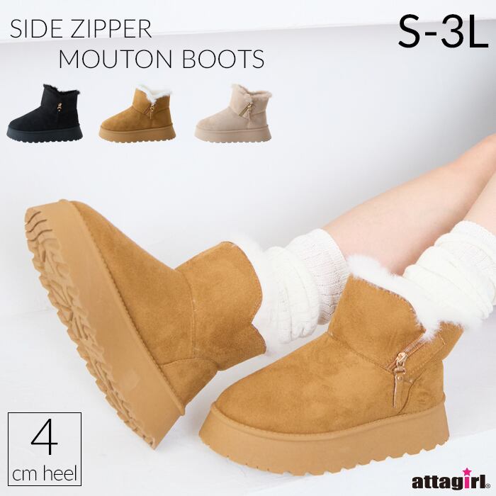 厚底でスタイルアップ効果のあるムートンブーツ。
