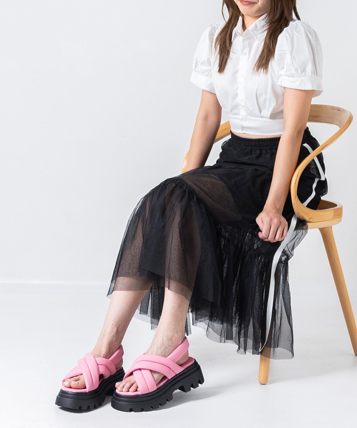 甲とかかとのベルトは柔らかい素材なので足当たり良く快適な履き心地です。安定感のある厚底ソールで歩きやすく厚底慣れしていなくても安心して歩けます。