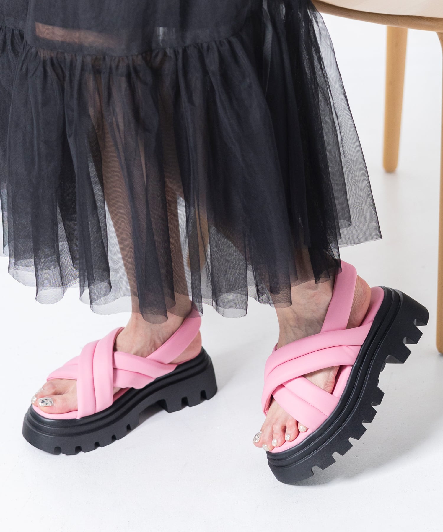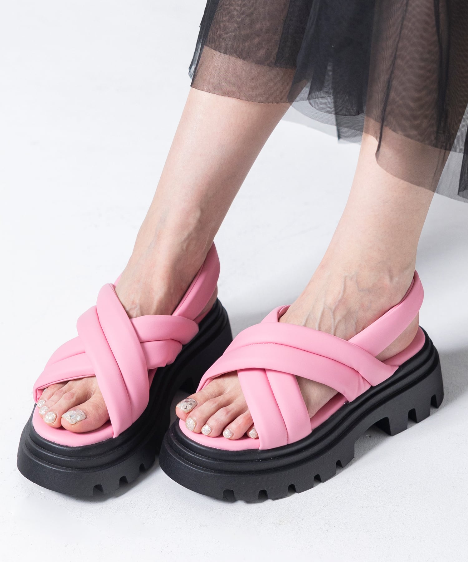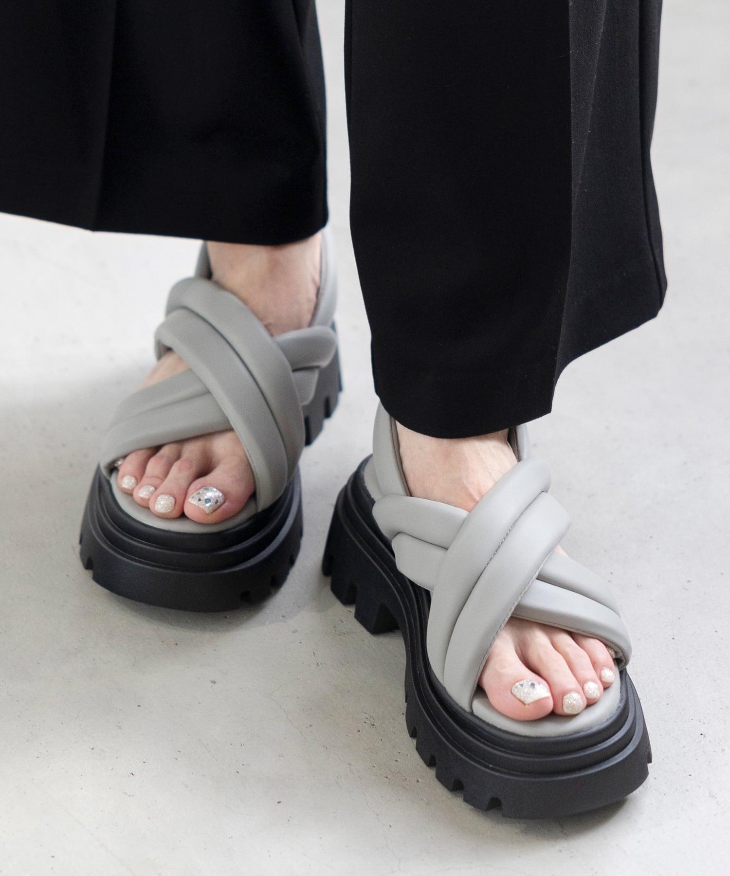 パデットデザインが特徴的な厚底スポーツサンダル。
