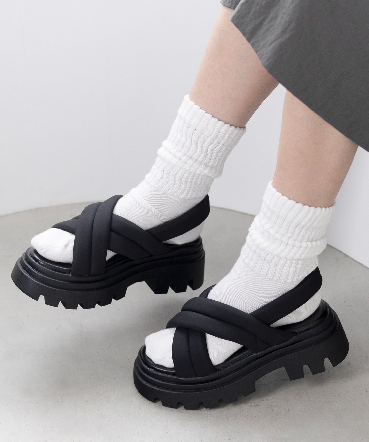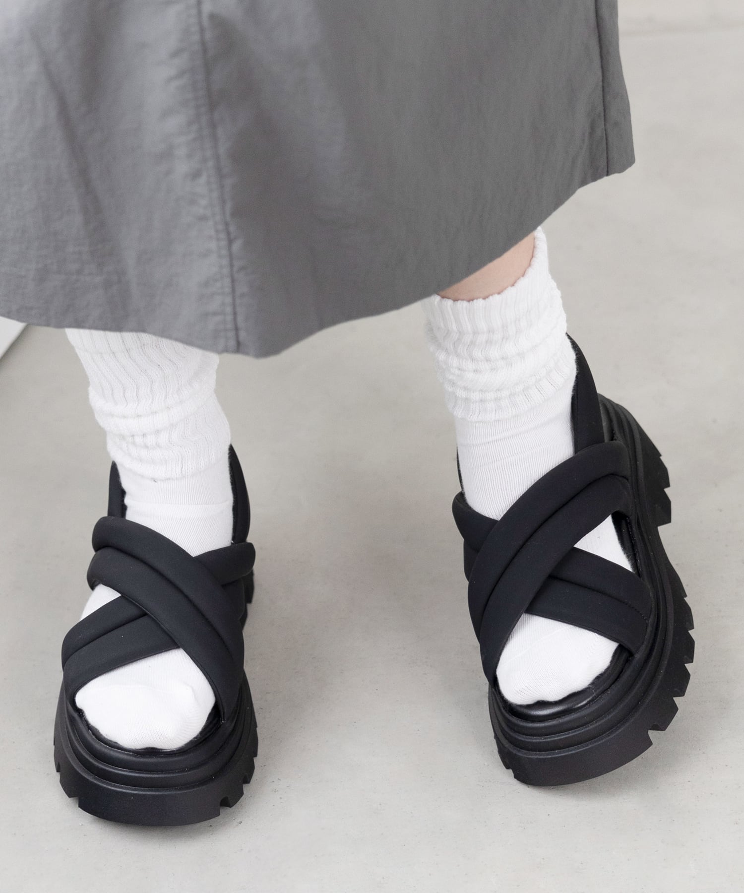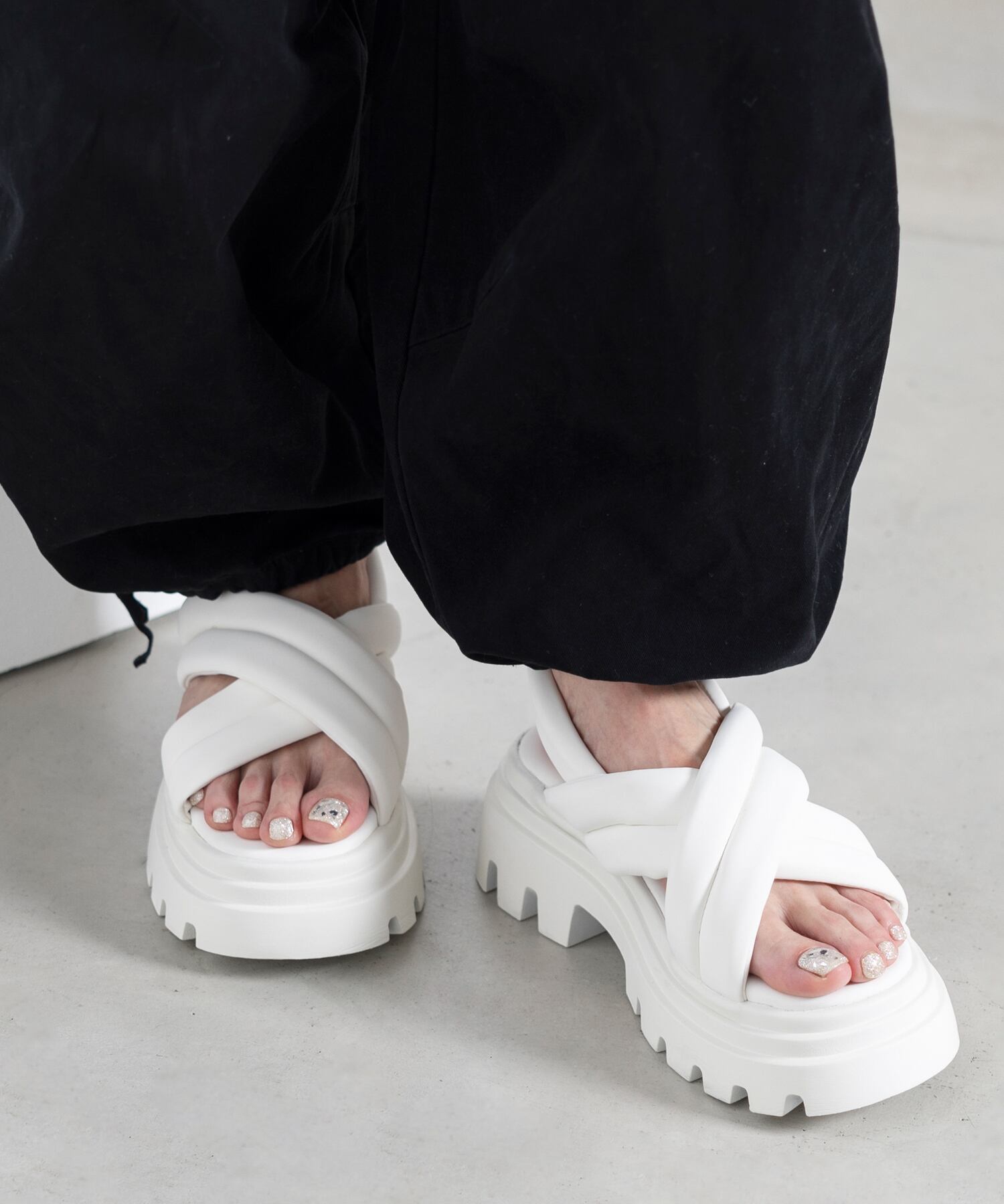 パデットデザインが特徴的な厚底スポーツサンダル。