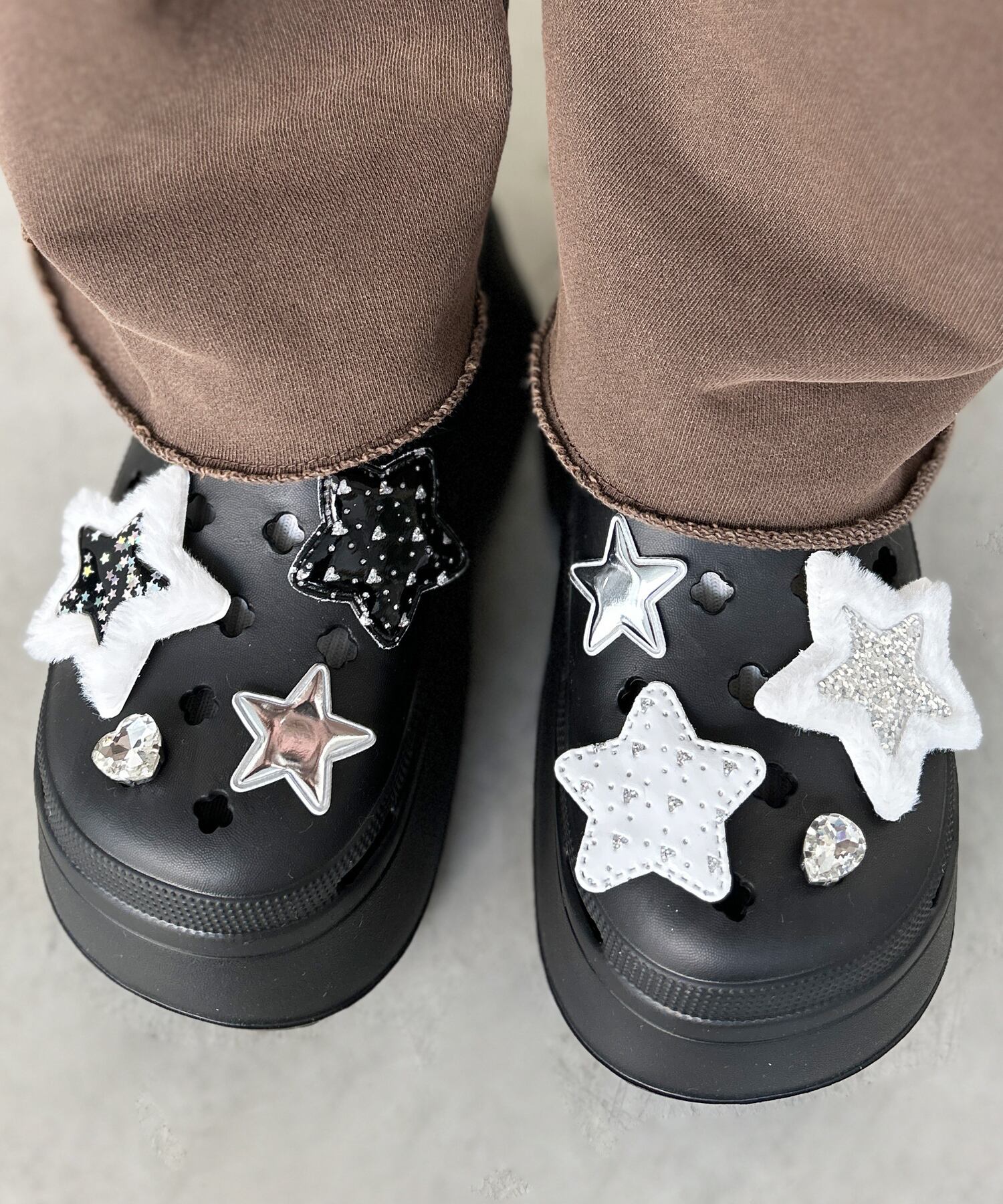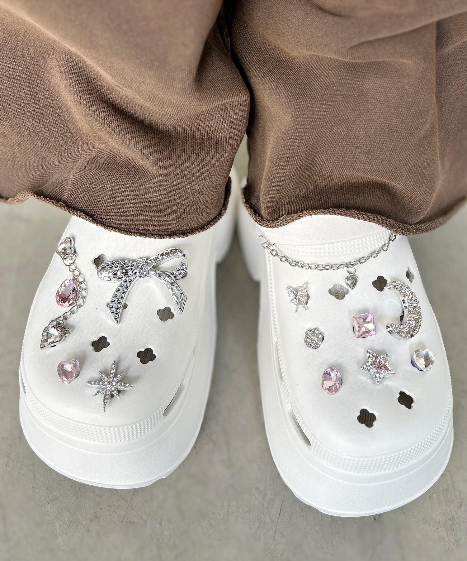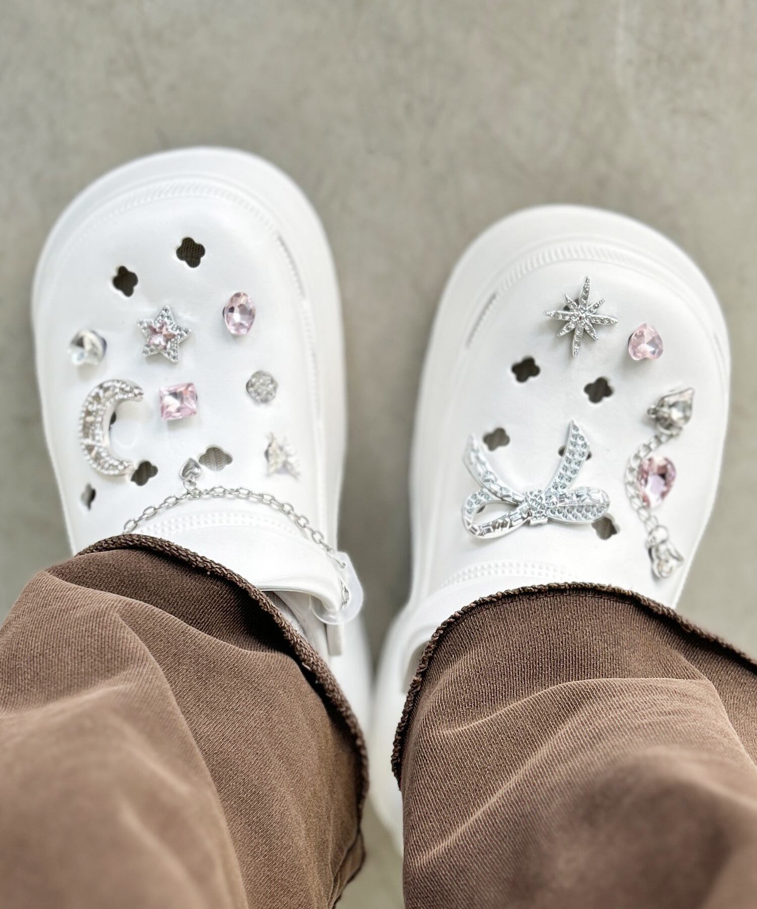 シンプルなシューズも、付けるだけで自分だけのデザインにアップデートできます。