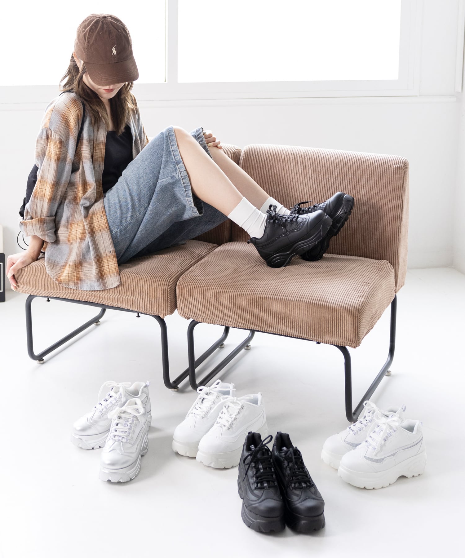 トレンドコーデにバッチリハマる厚底のスニーカー。