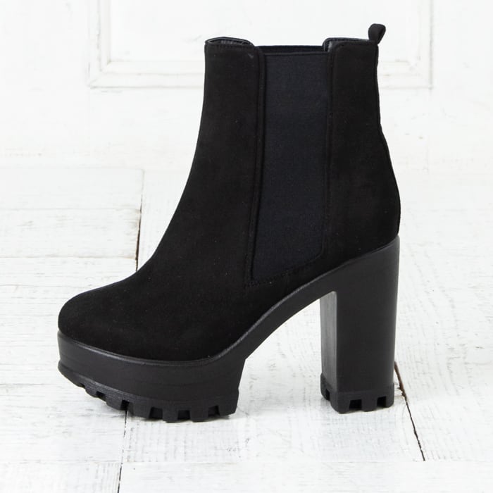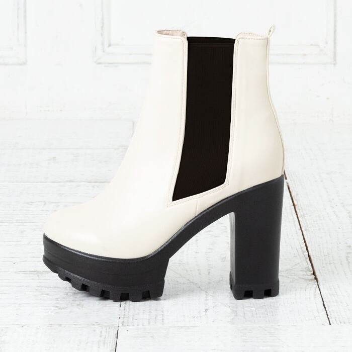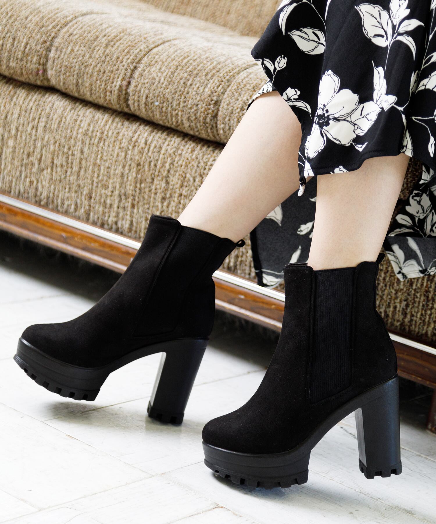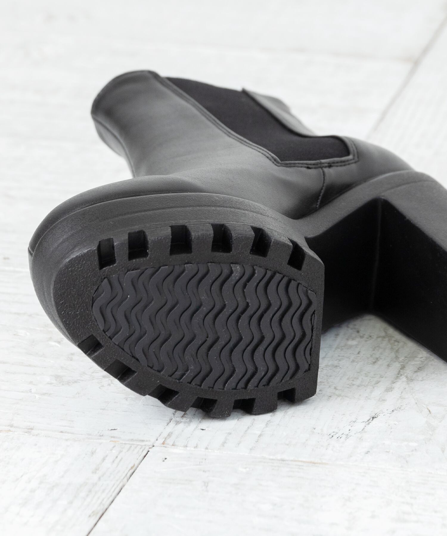 定番のサイドゴアデザインに太めヒールを合わせたショートブーツ。