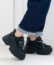 ダブルの靴紐がポイントの厚底ダッドスニーカー。