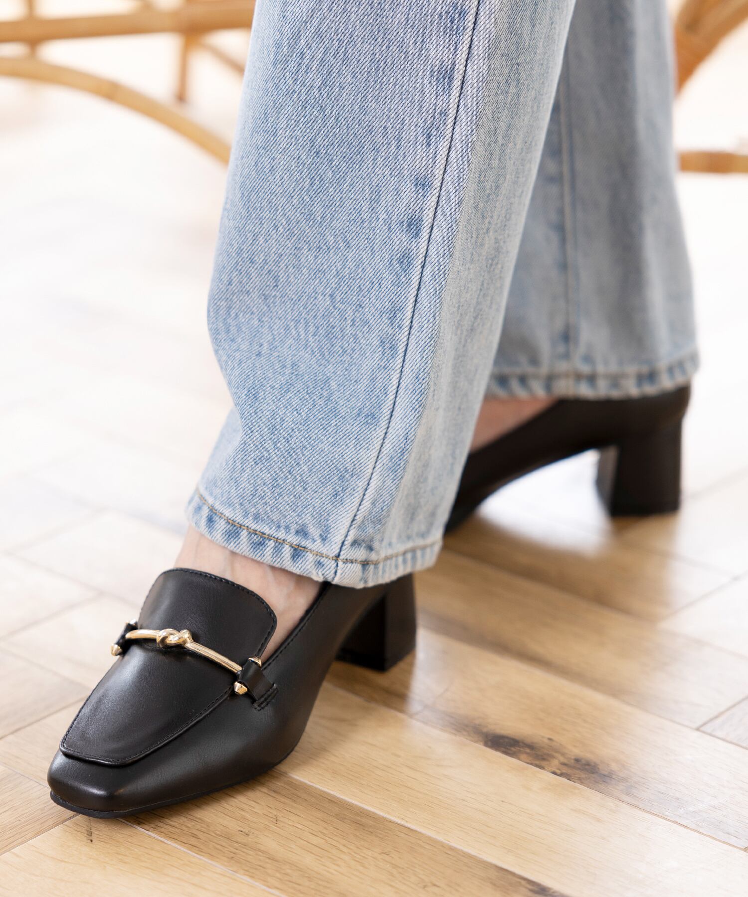 きれいめなゴールドのビット付きでオフィススタイルからお出かけコーデまで幅広く活躍してくれます。