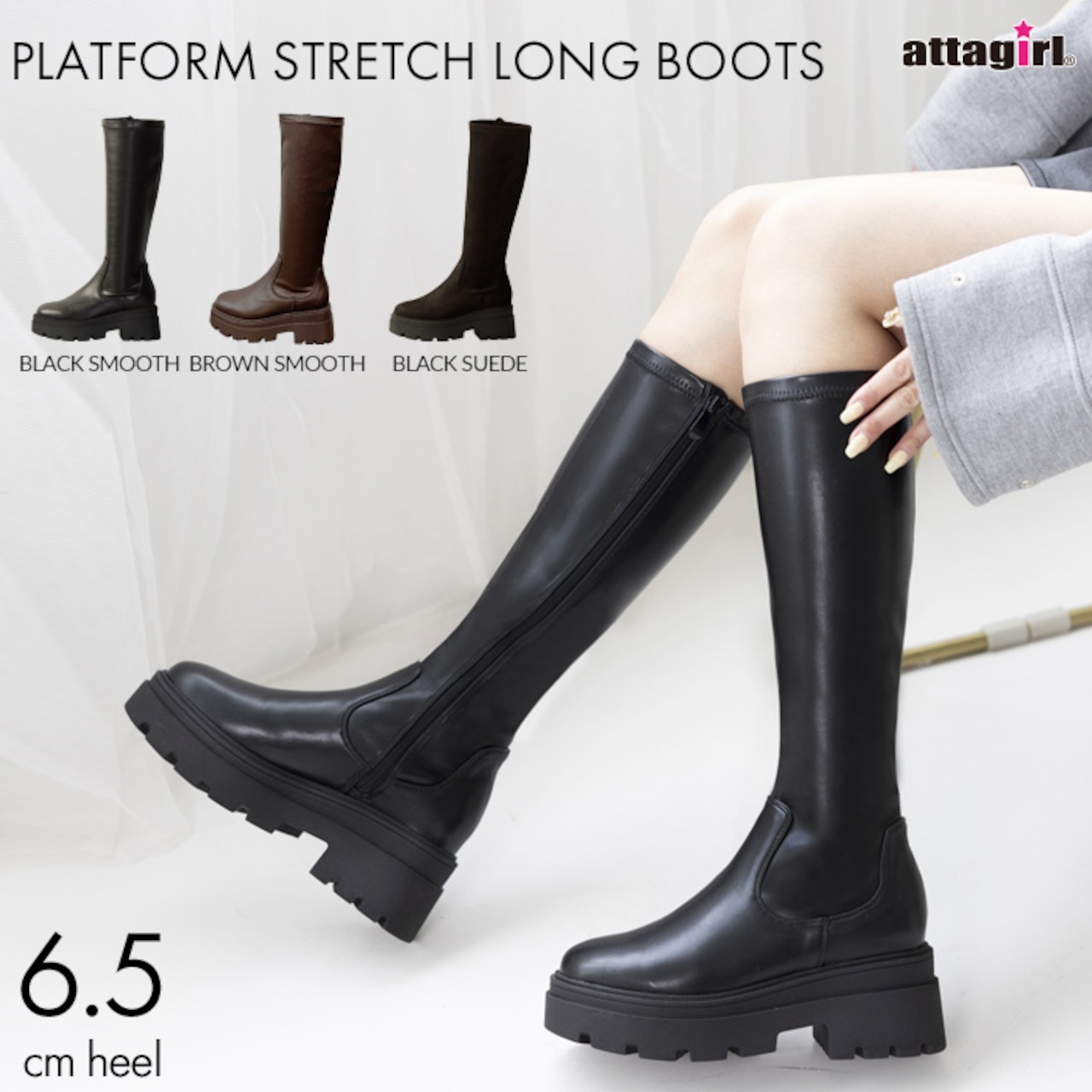 ストレッチ素材×タンクソールでトレンド感満載のロングブーツ。