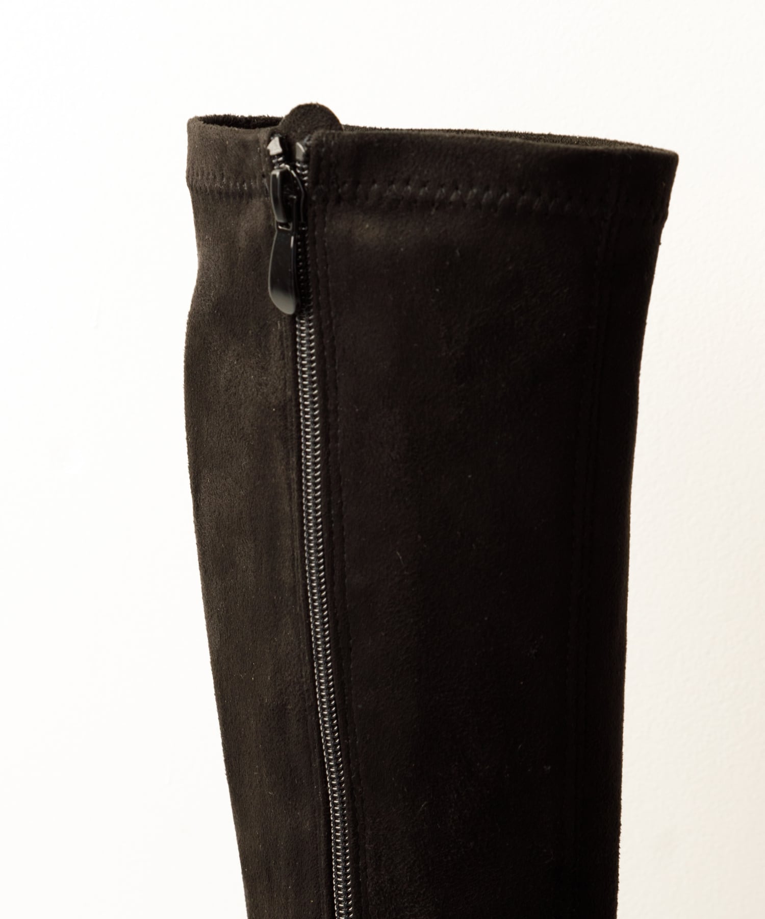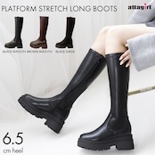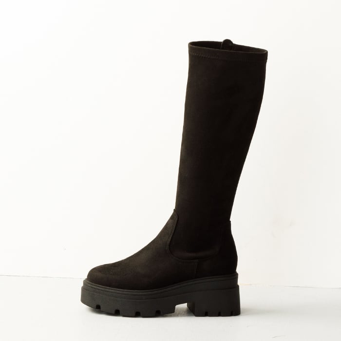 安定感のある厚底で歩きやすく、しっかりスタイルアップもできます。筒周りは柔らかいストレッチ素材で足当たり良く快適な履き心地です。