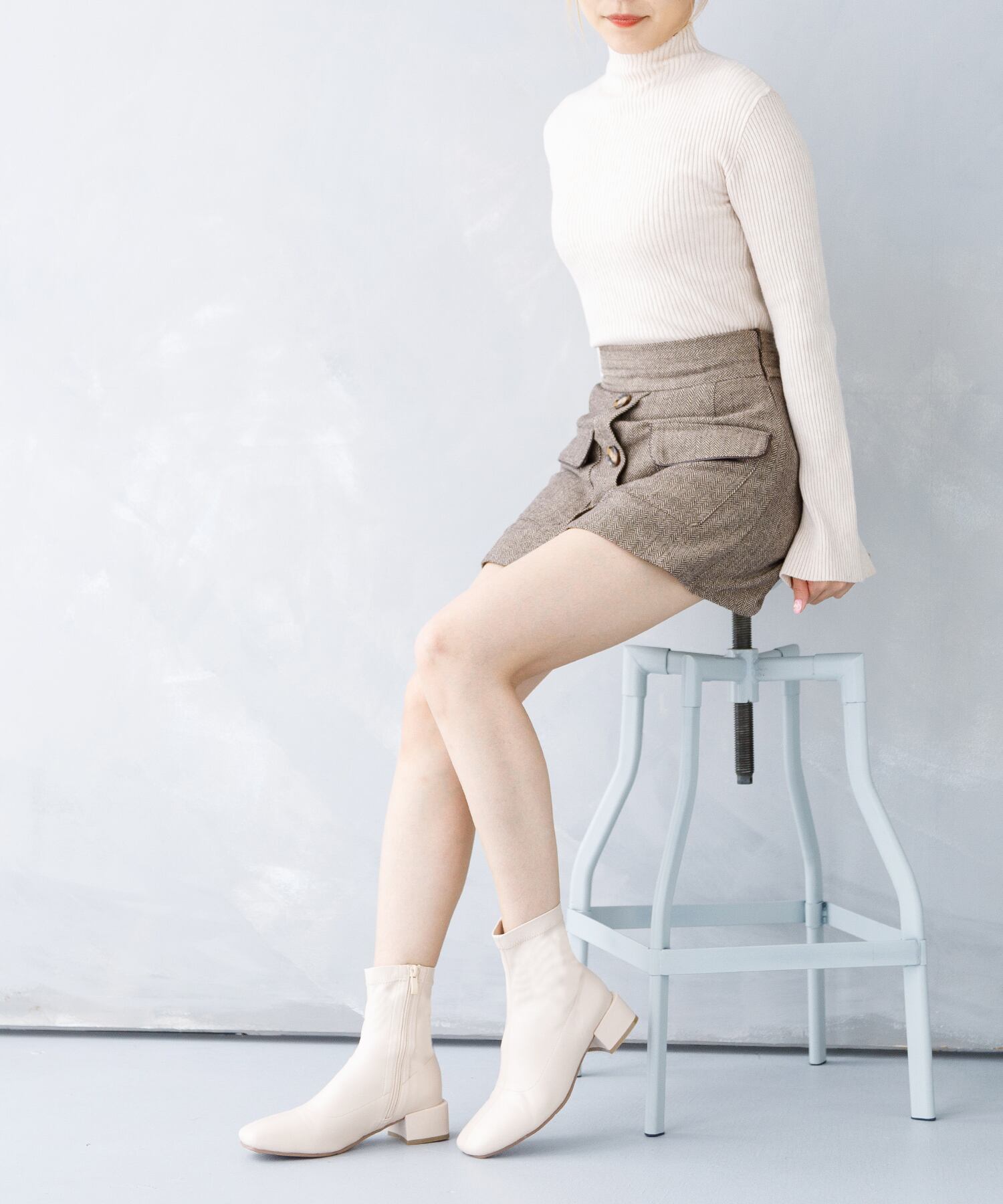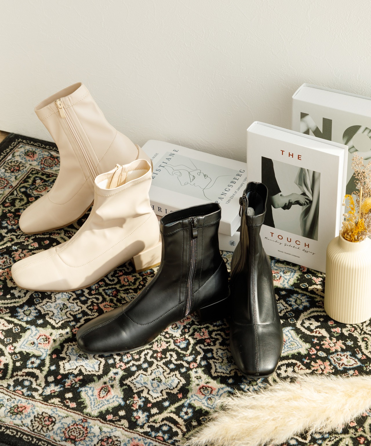 シンプルなデザインで普段使いしやすいストレッチショートブーツ。