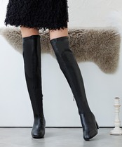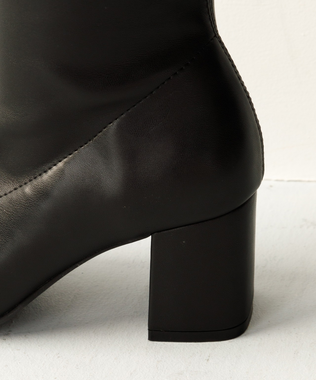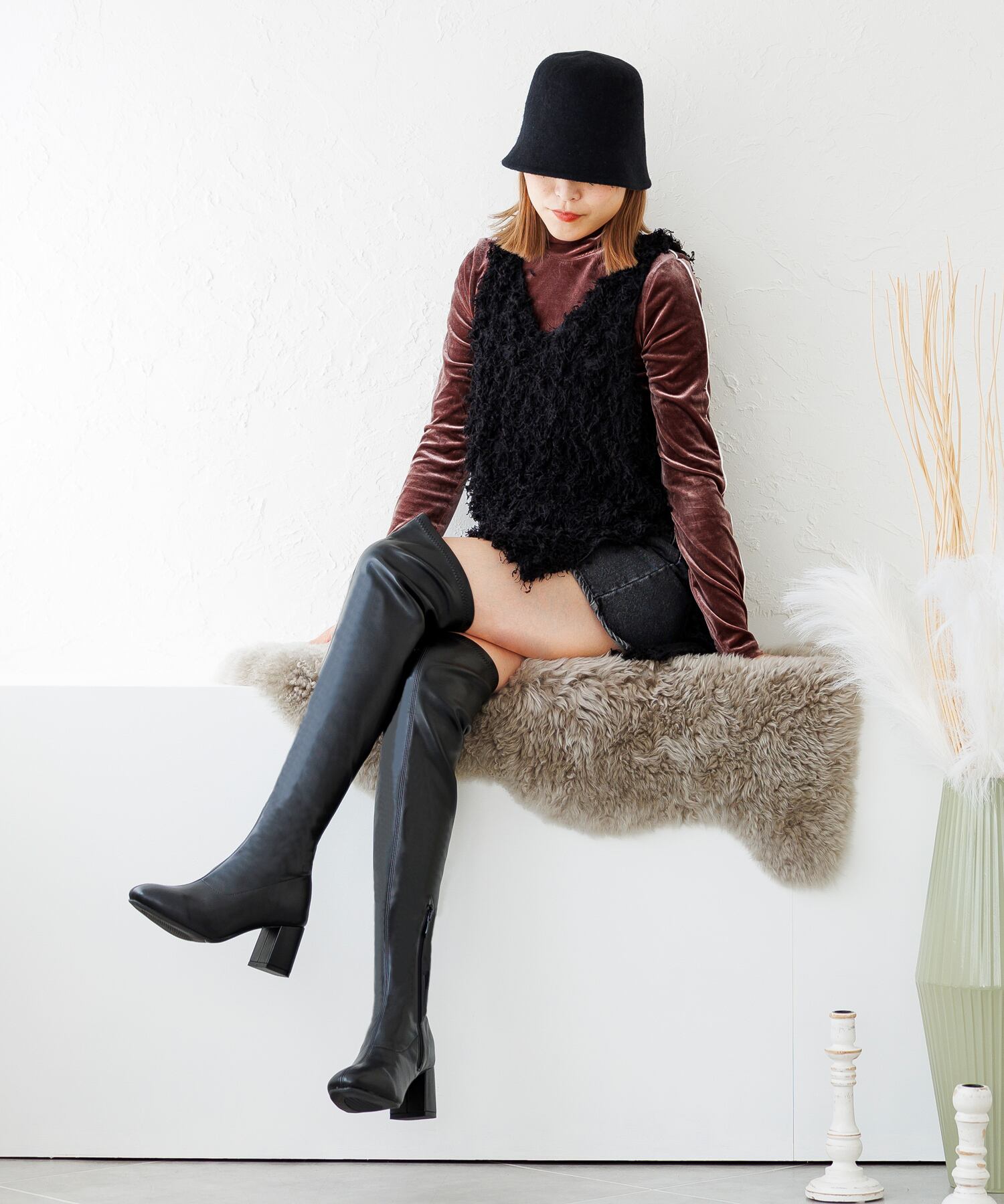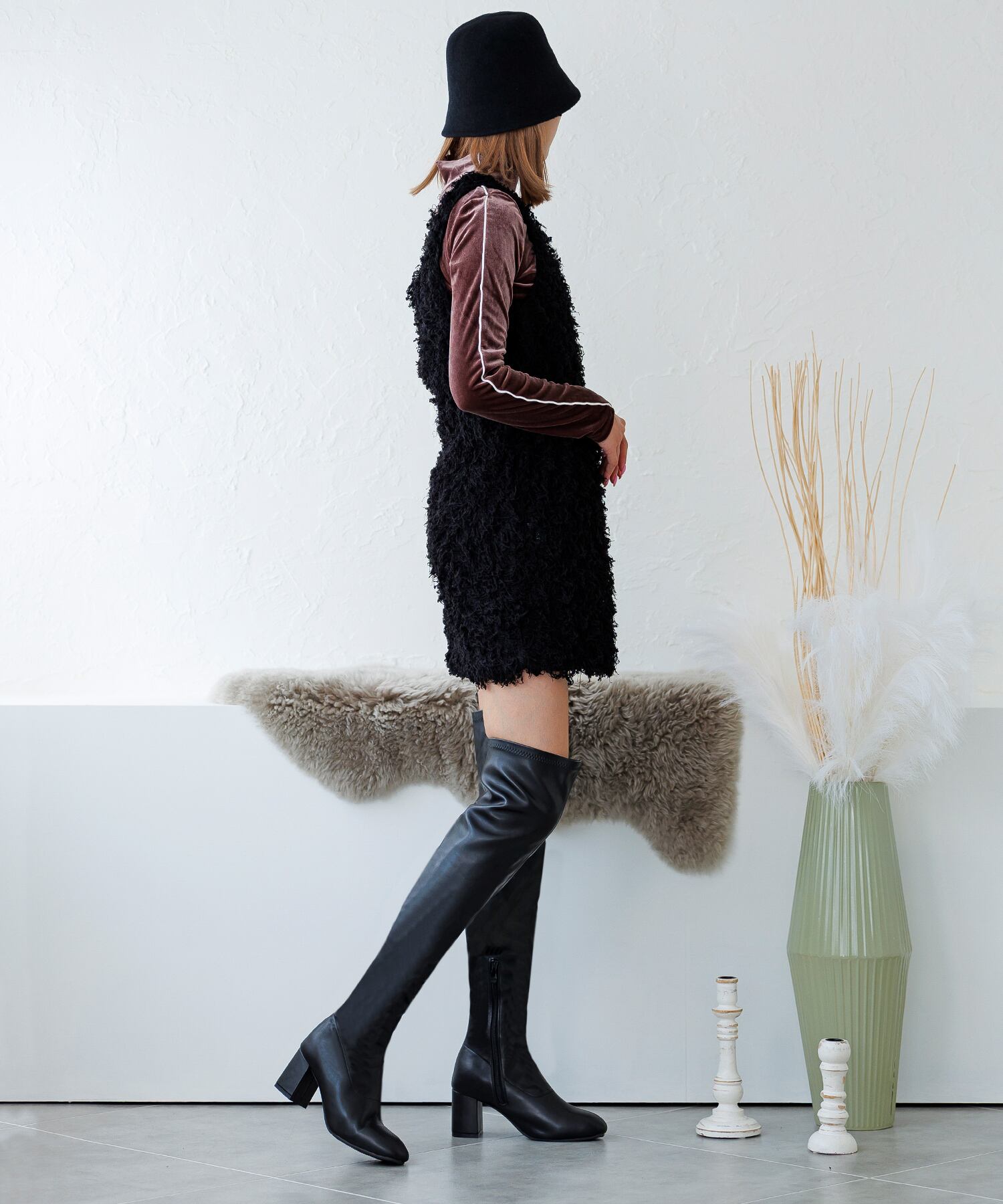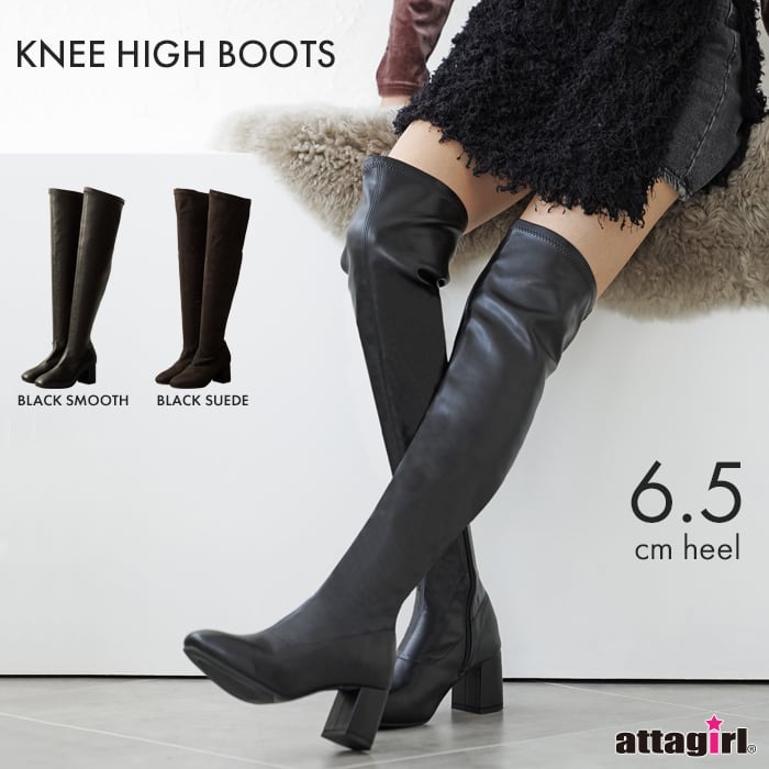 シンプルなデザインで合わせやすいニーハイ丈ストレッチブーツ。