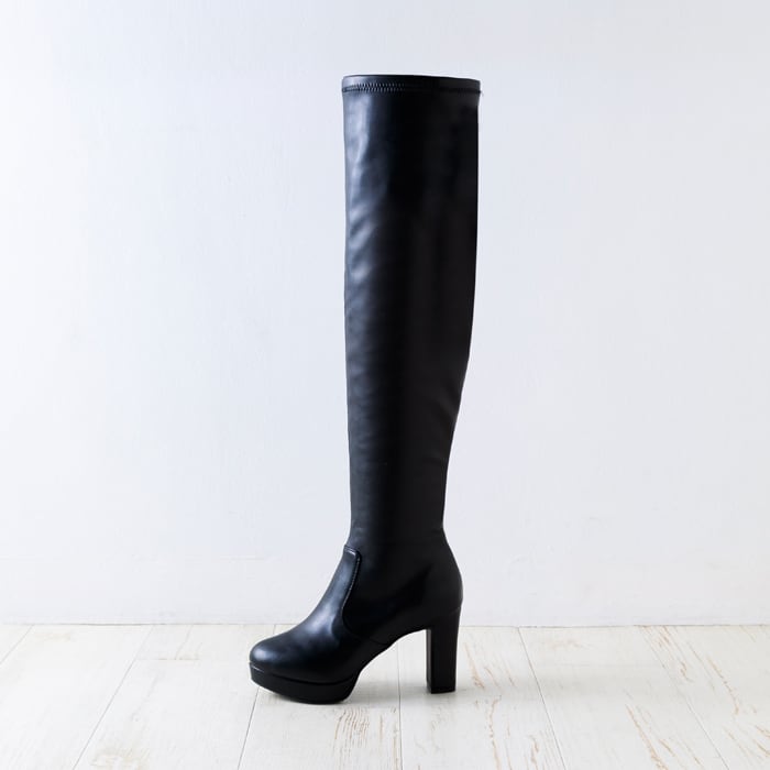 丸みのあるトゥのベーシックなニーハイ丈ストレッチロングブーツ。