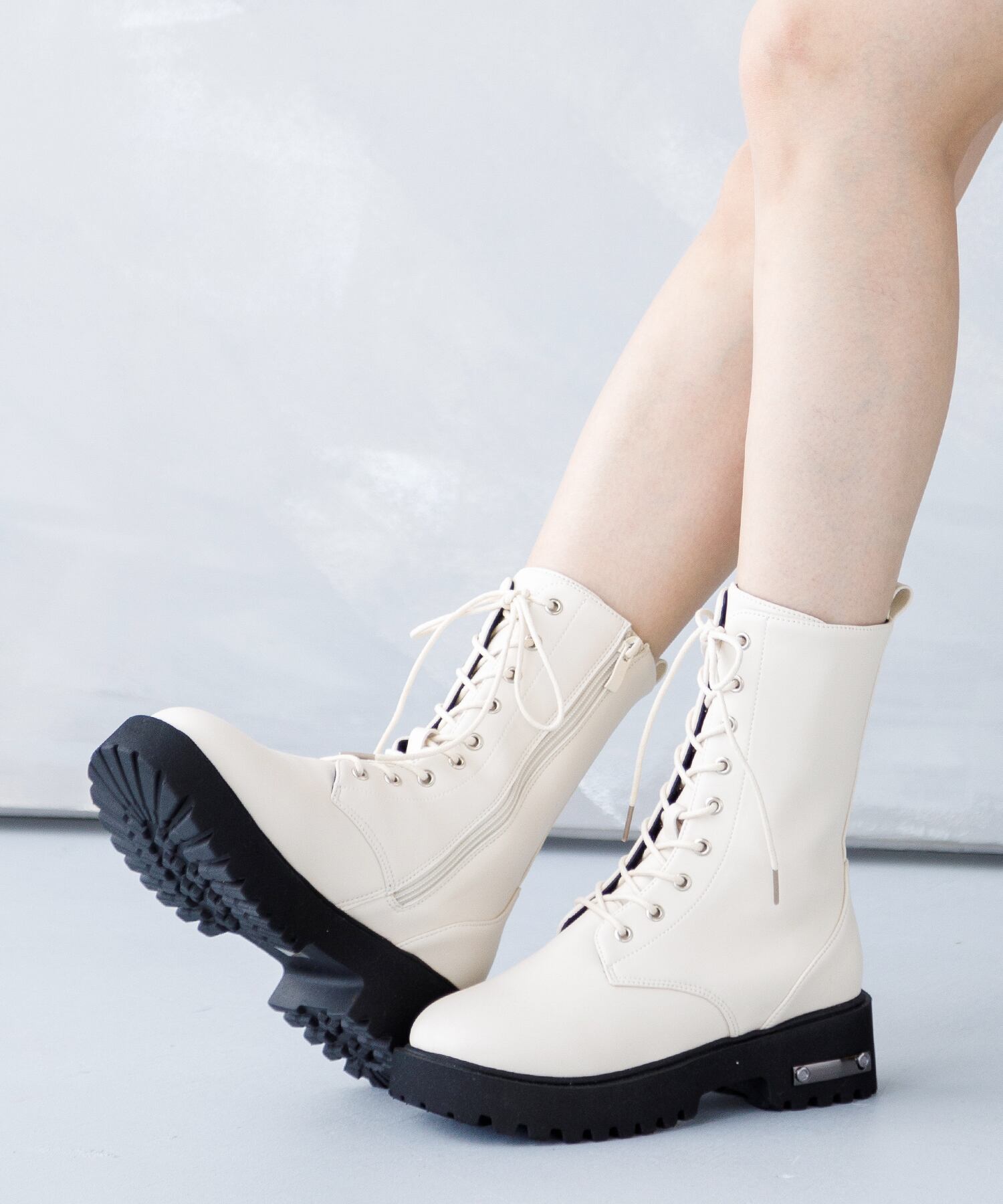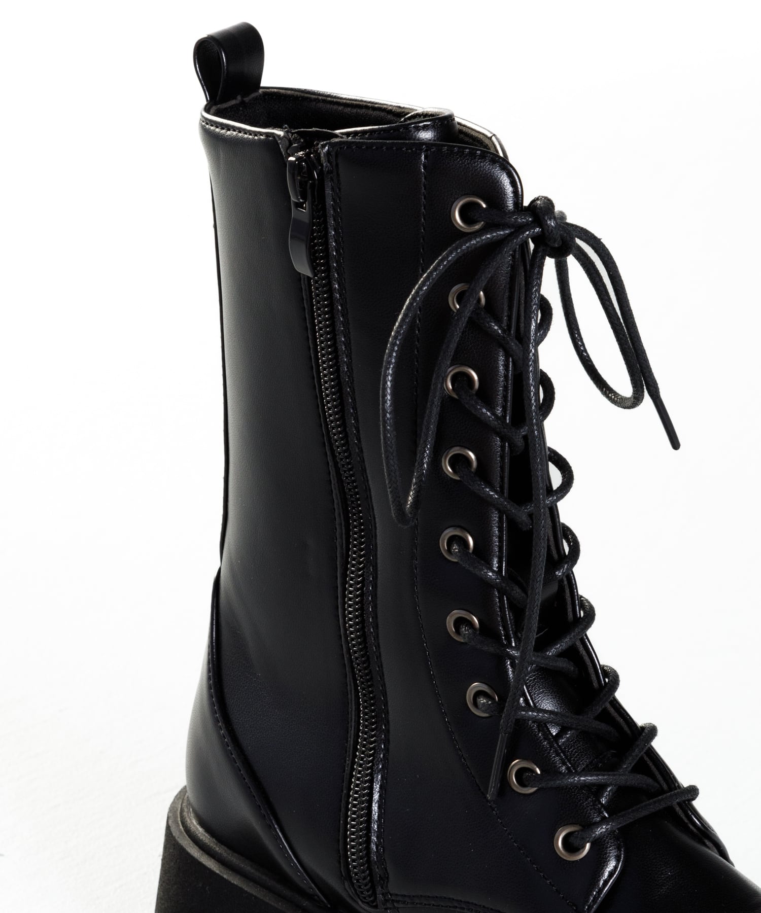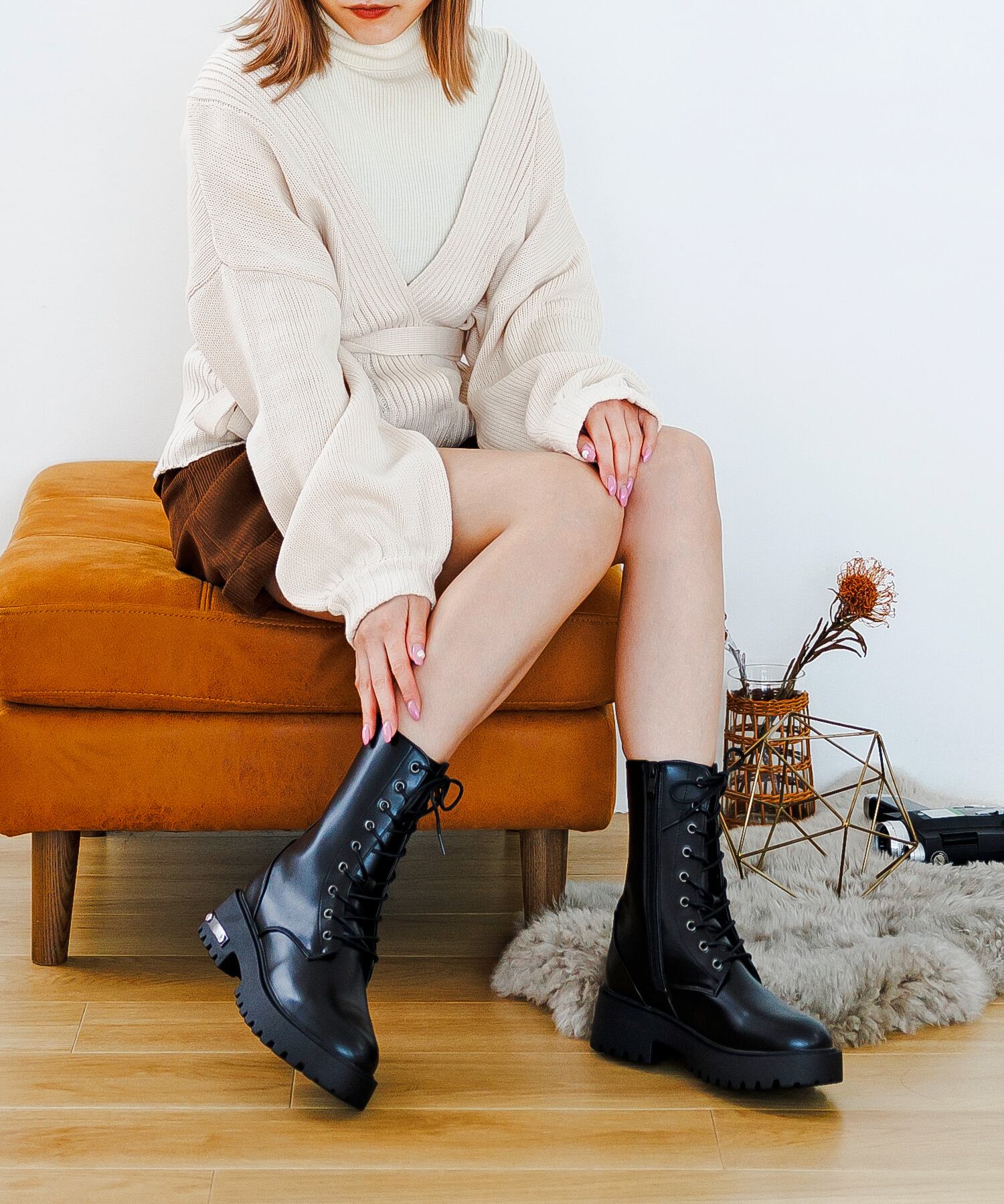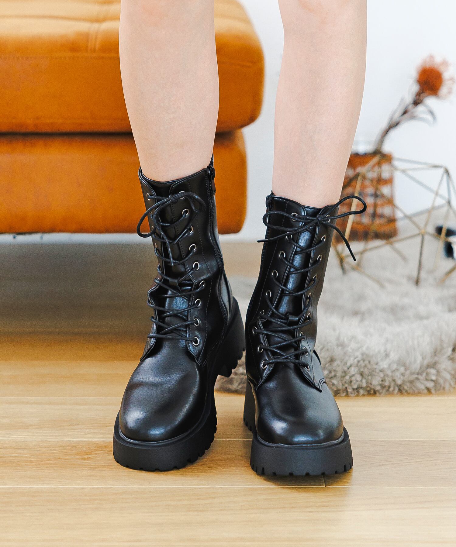 長すぎず短すぎないミドル丈のレースアップブーツ。