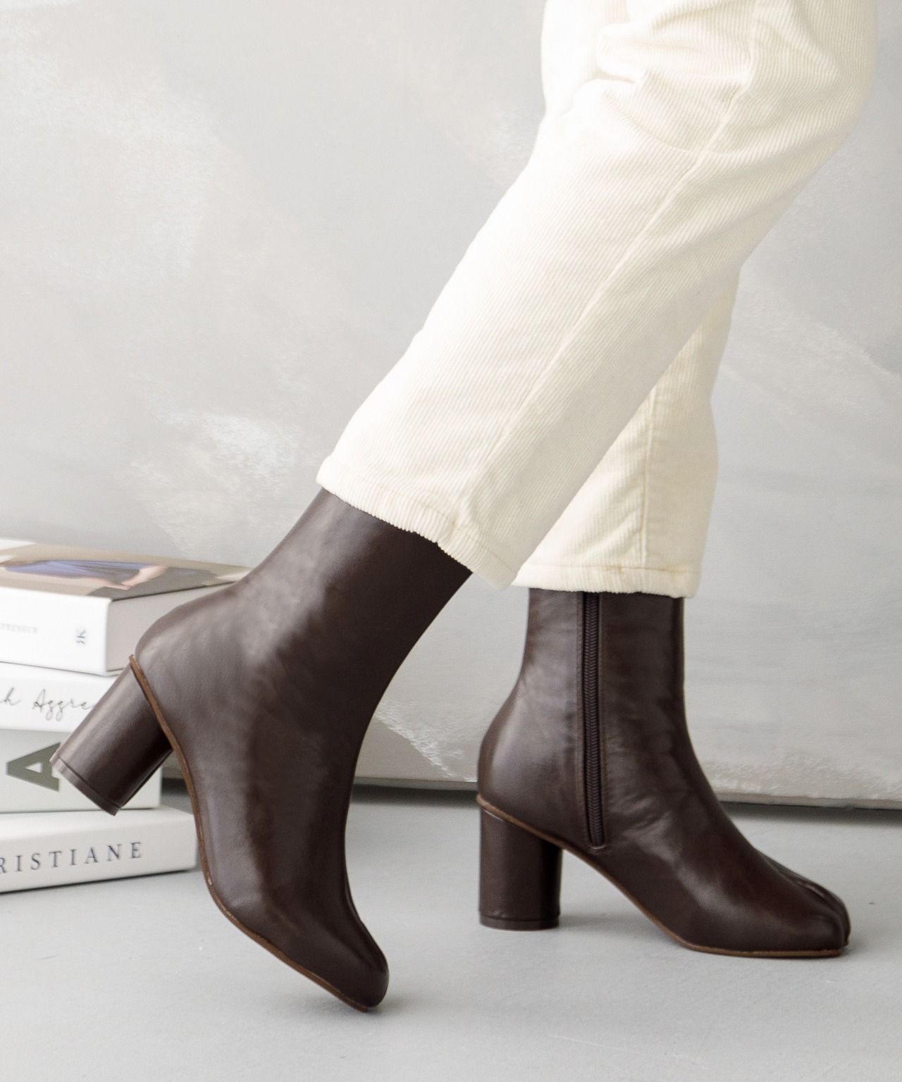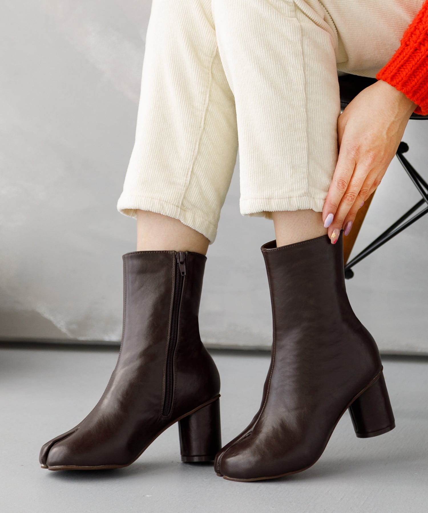足袋デザインのつま先がトレンド感のあるショートブーツ。