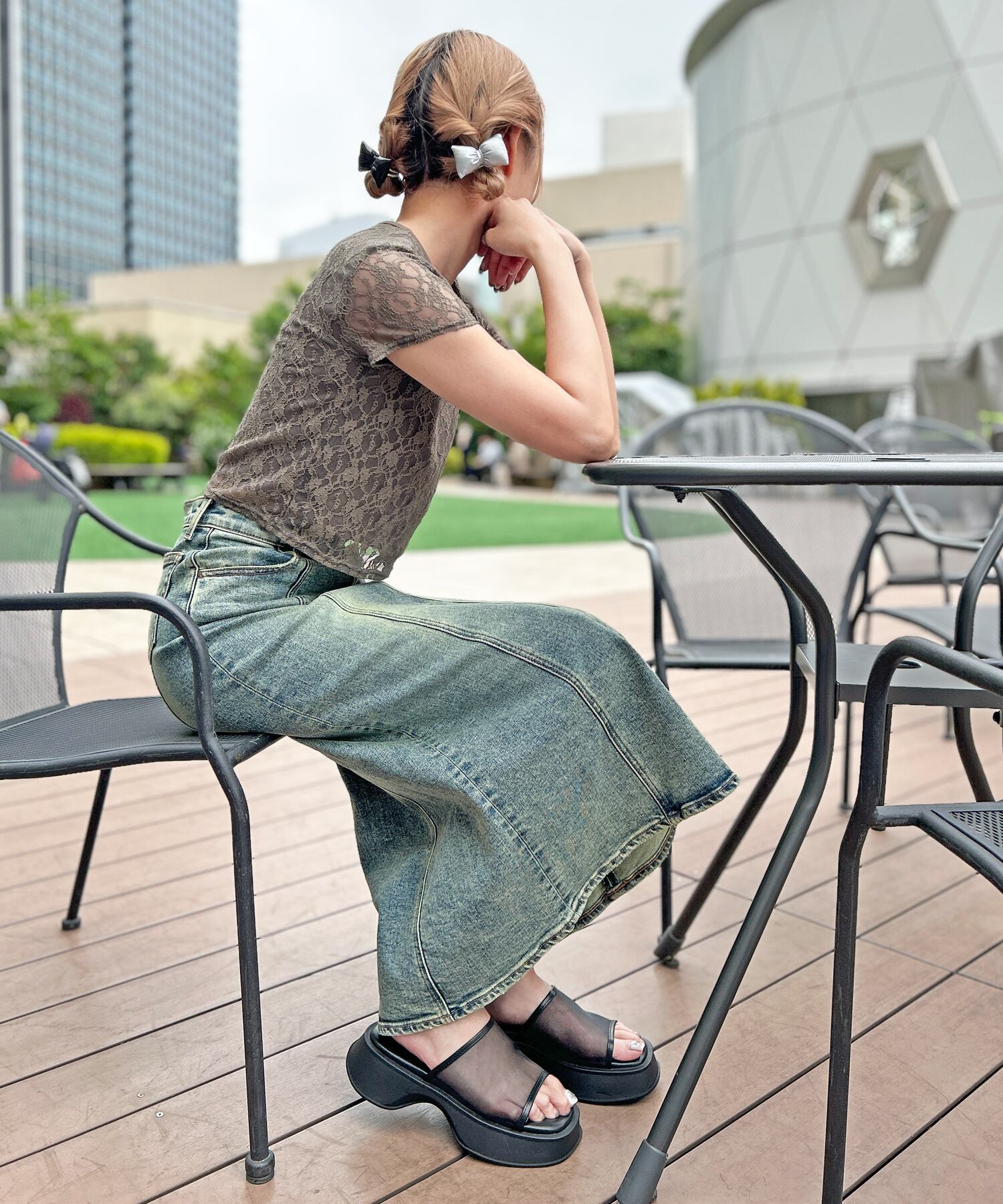 裾広がりのソールはエッジ感のあるシルエットでモードなスタイリングにも合わせやすい1足。