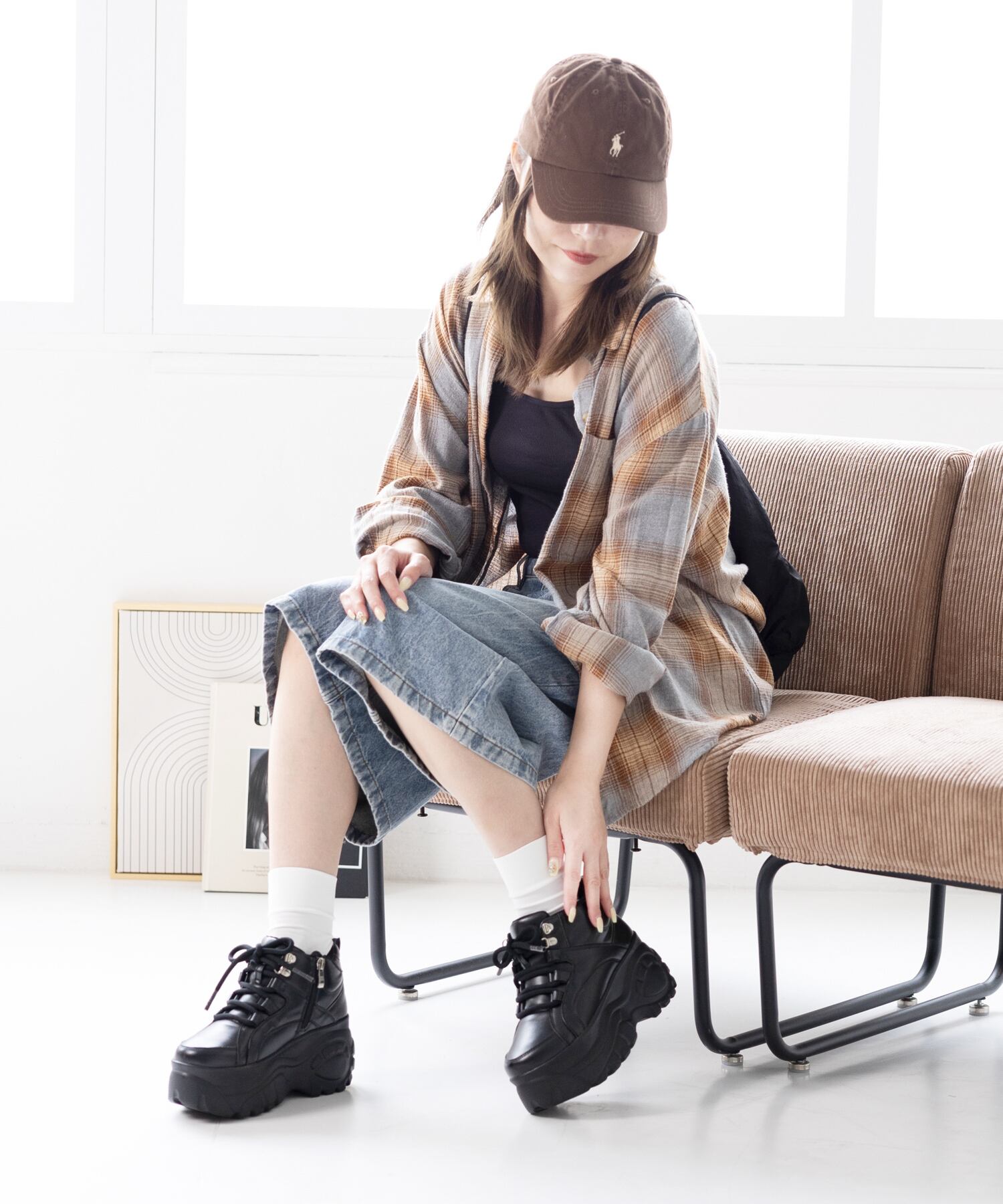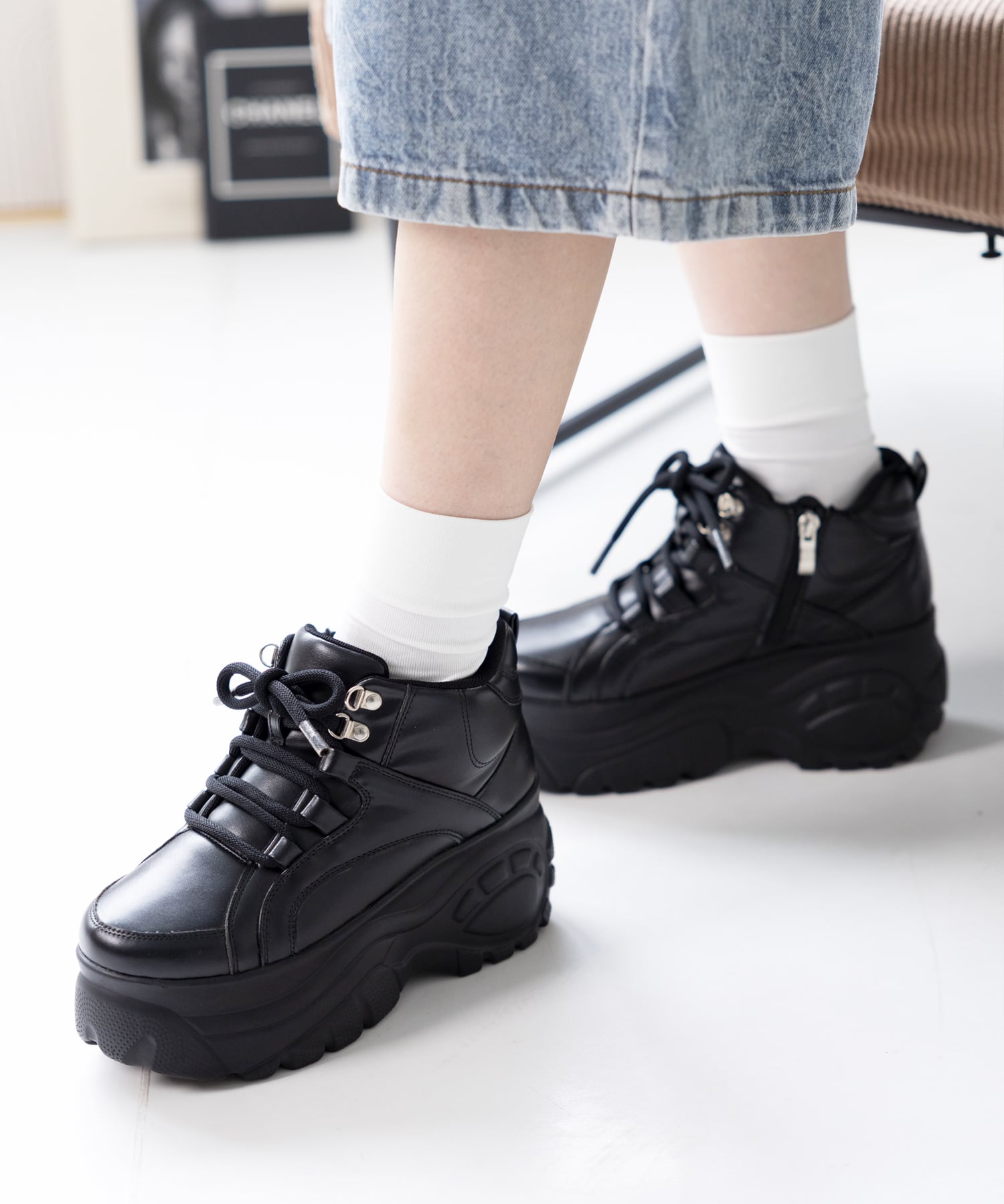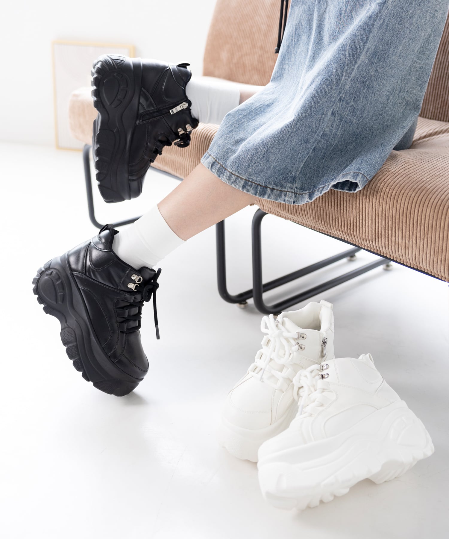 厚底ソールと絶妙な丈感が可愛いレースアップスニーカー。