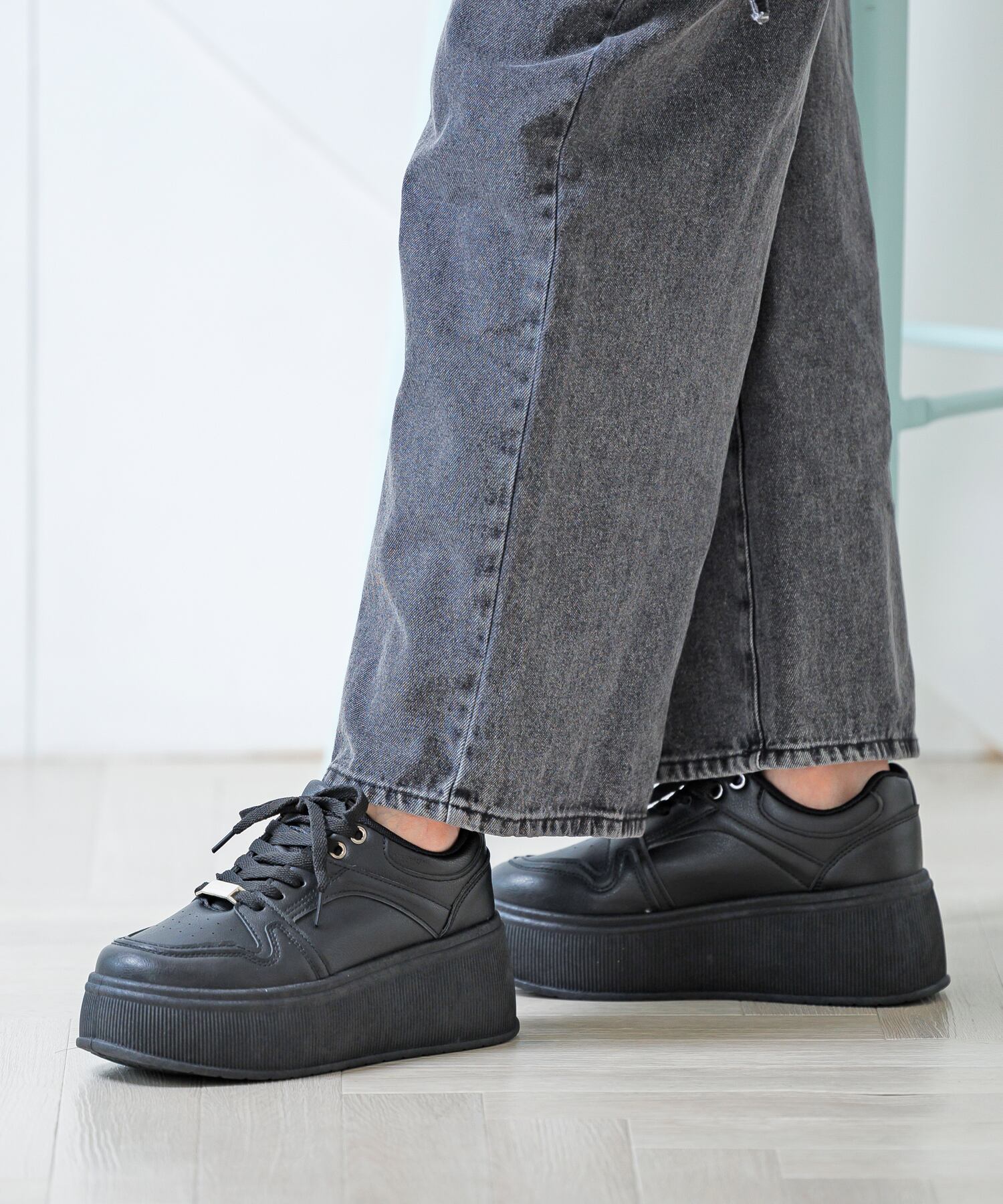 丸みのあるデザインでカジュアル過ぎない厚底スニーカー。