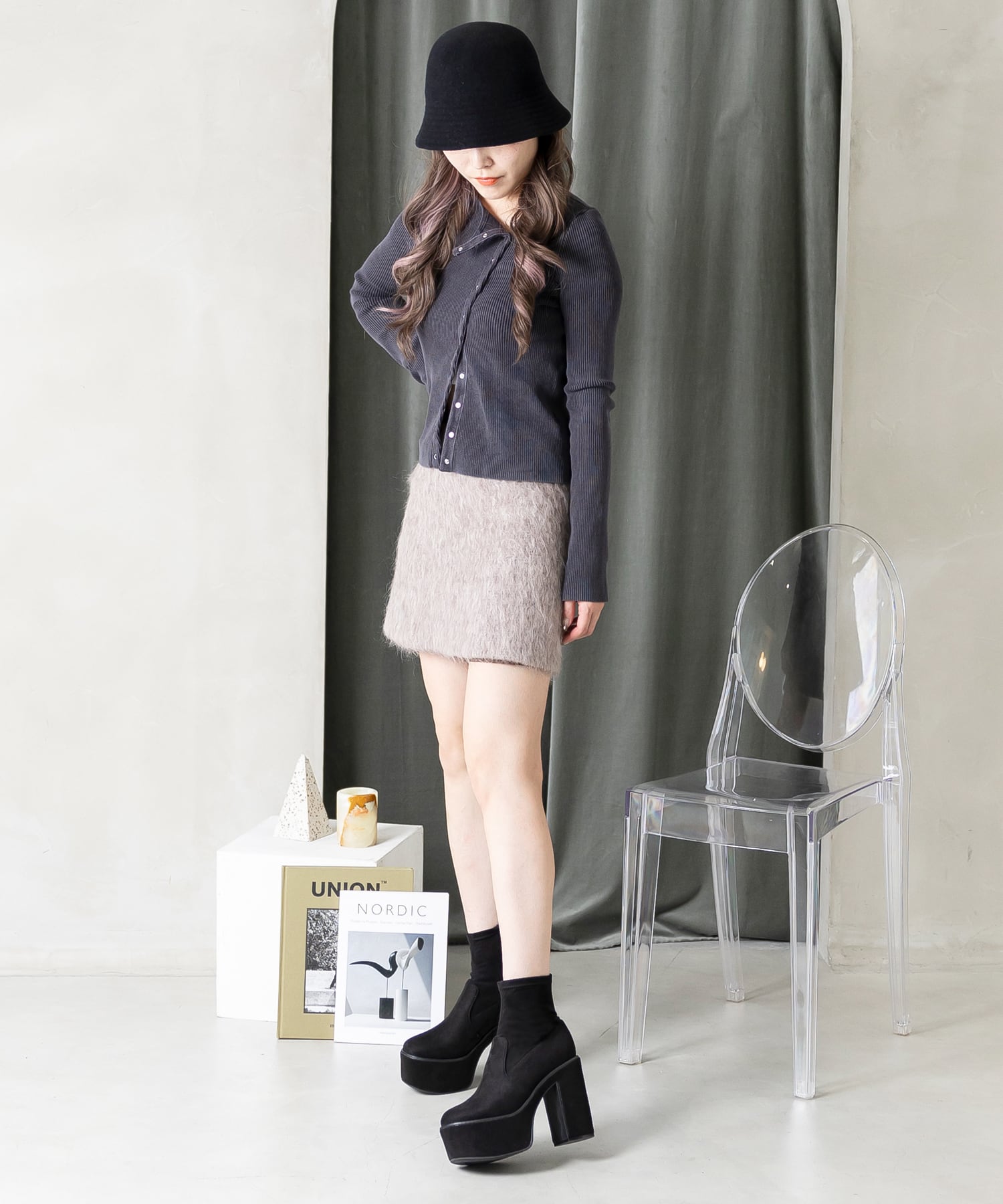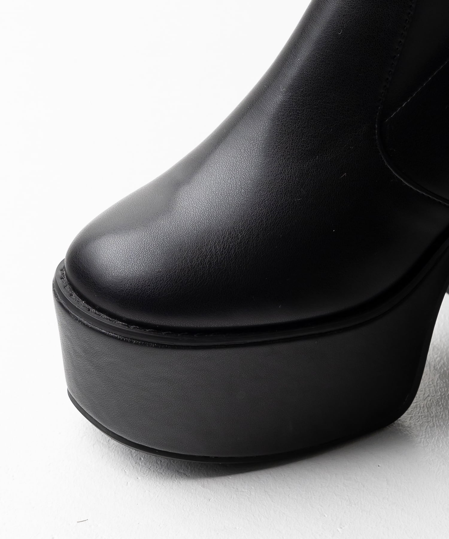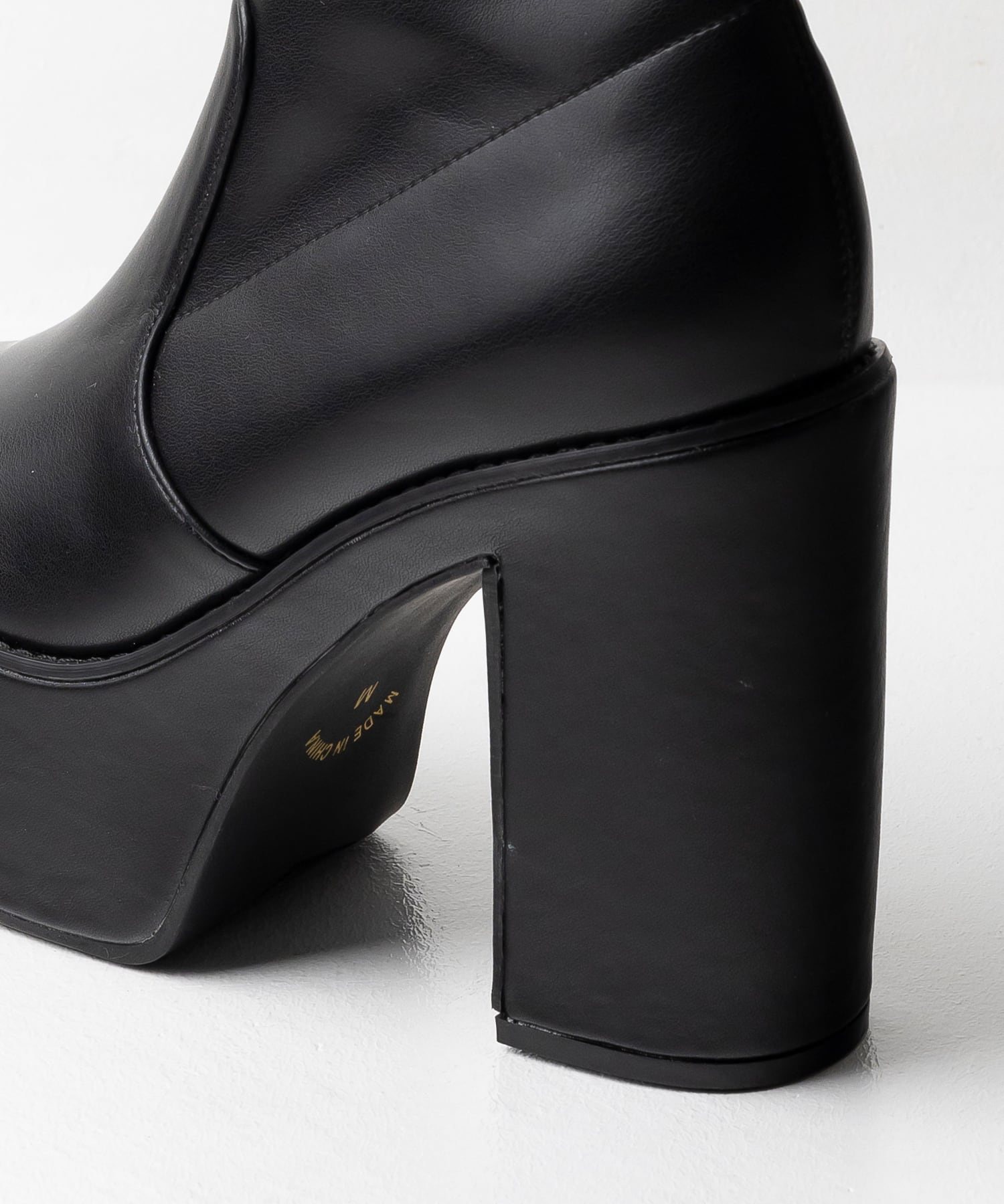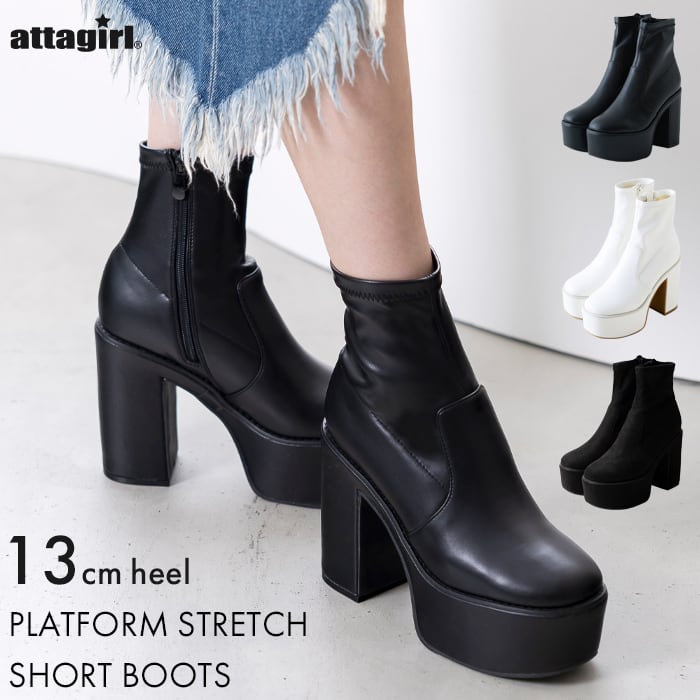 伸縮性のあるストレッチ素材を使ったフィット感の良い厚底ショートブーツ。