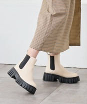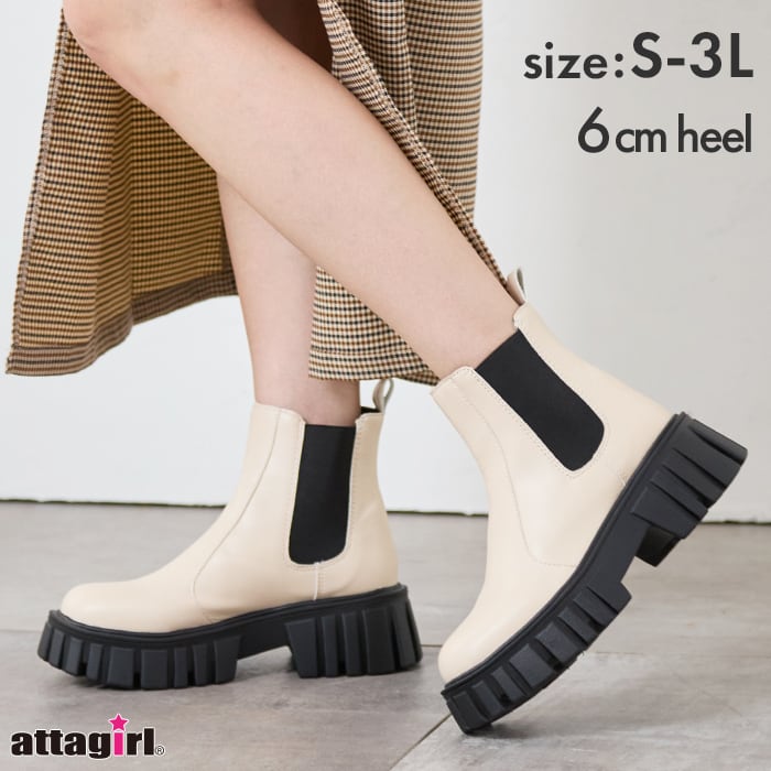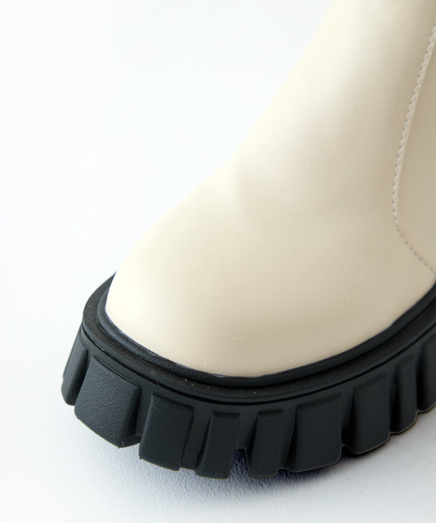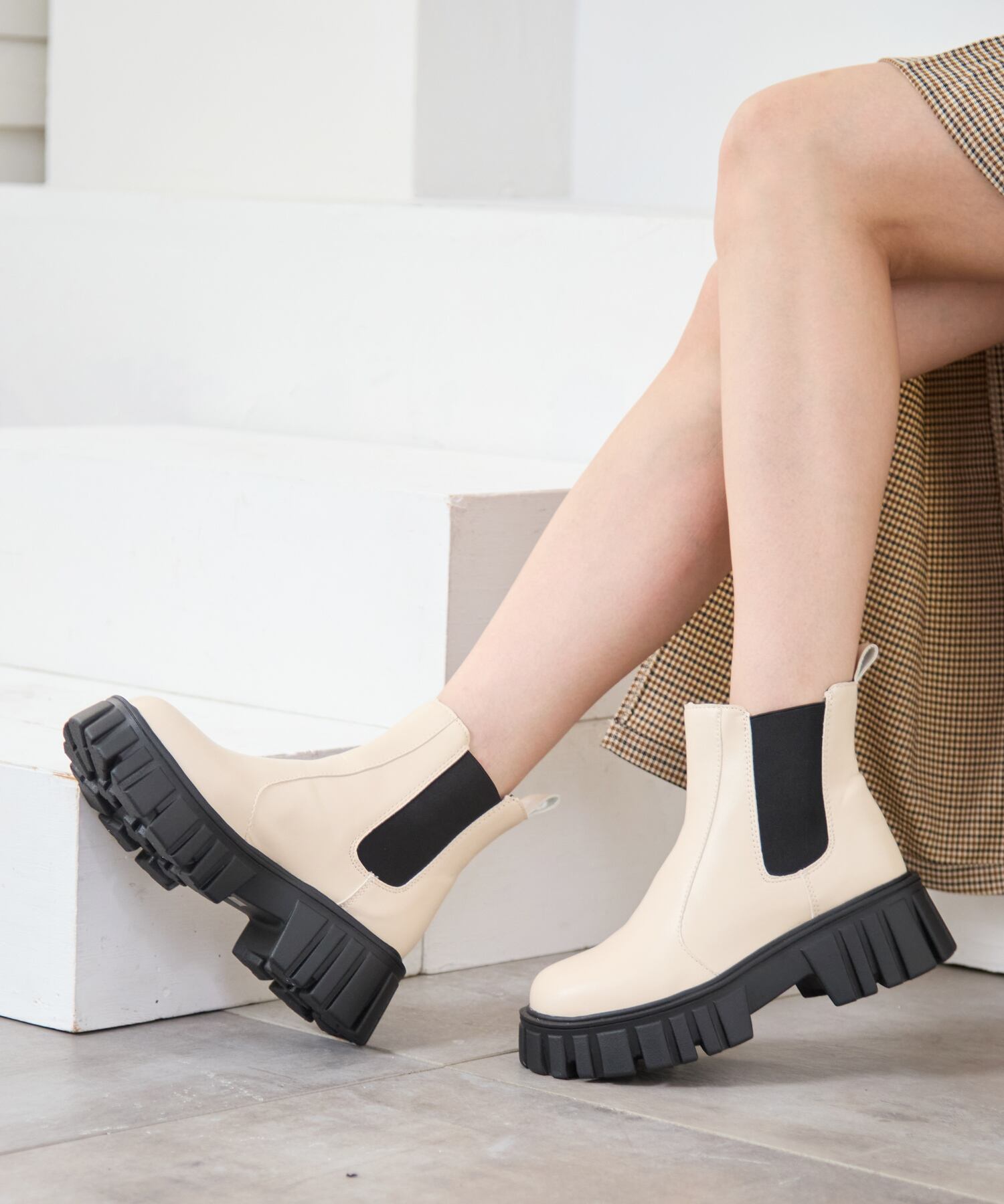 厚底ソールの凸凹デザインがポイントのサイドゴアブーツ。