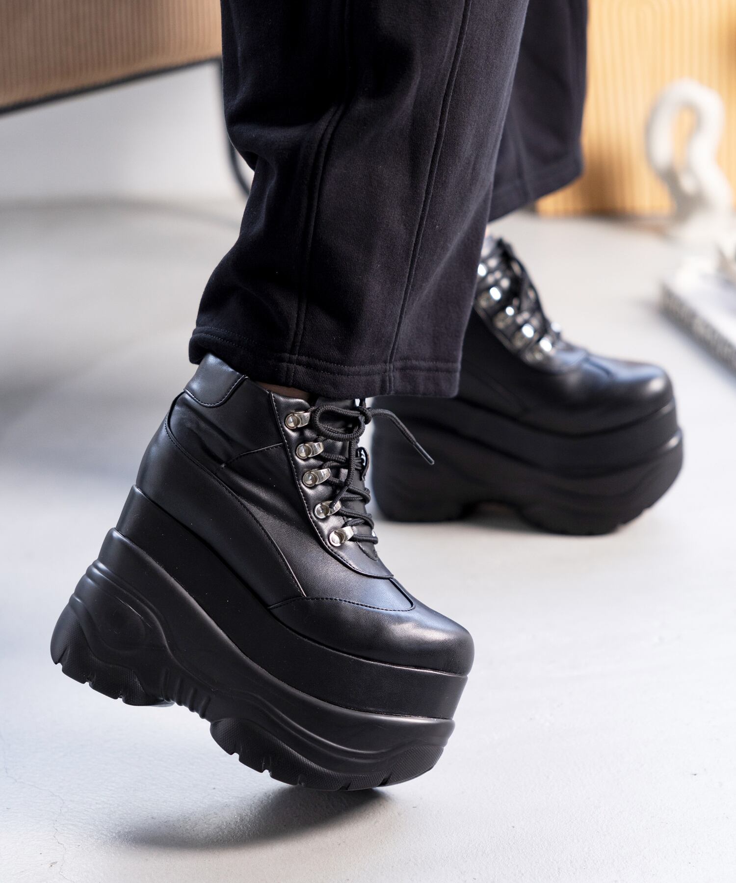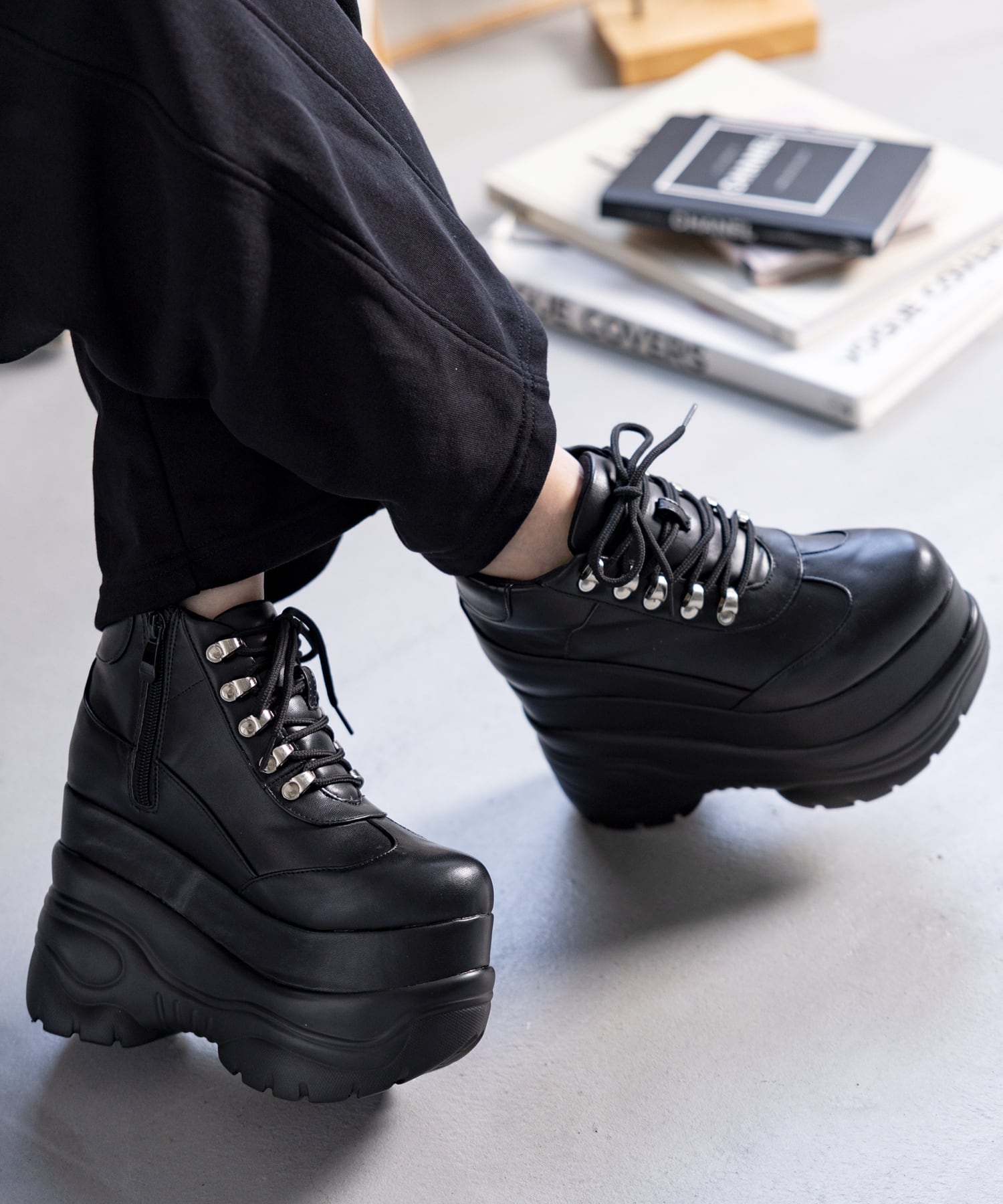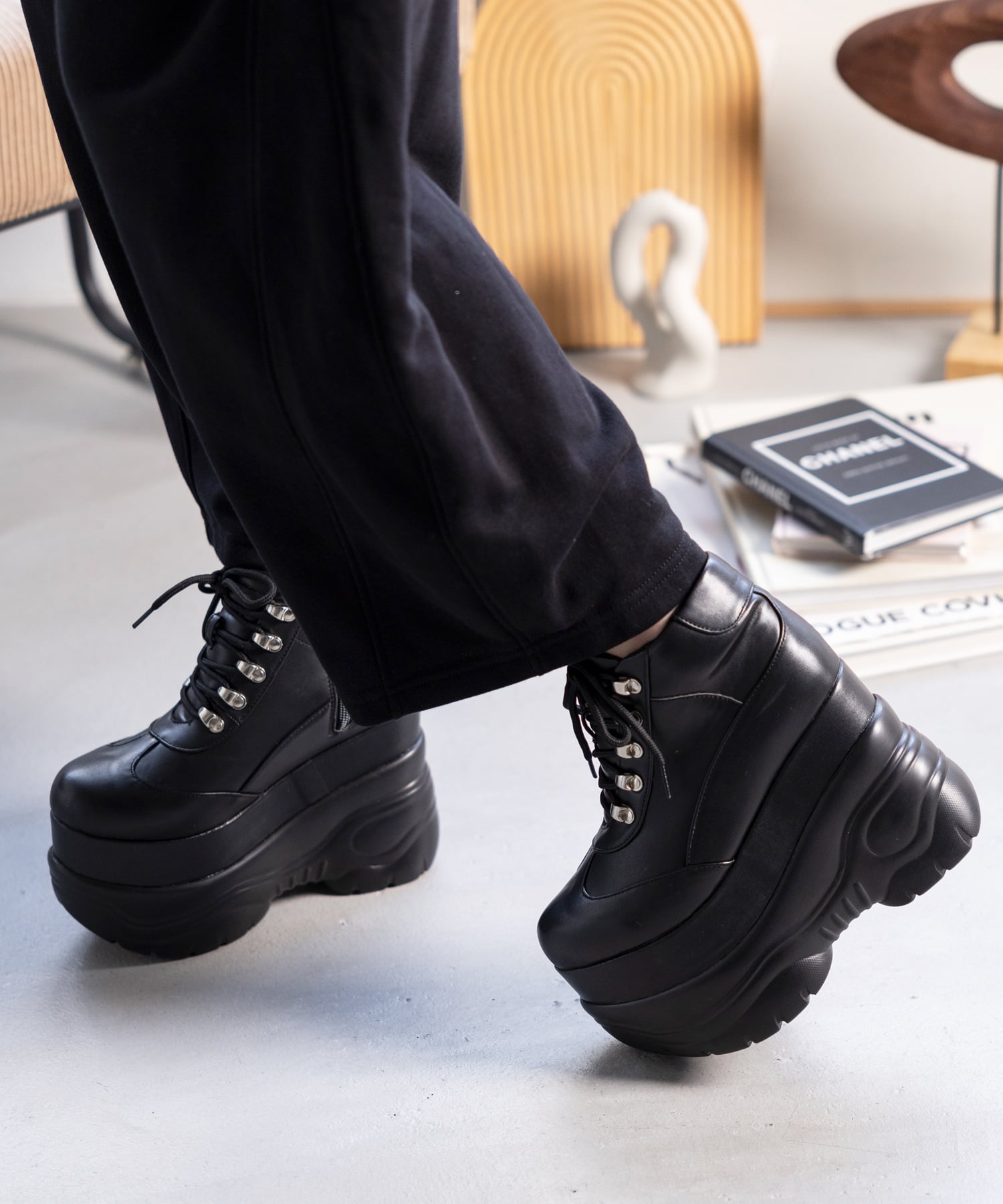 厚底に慣れていなくても高低差が少なく足が痛くなりにくいです。レースアップの紐で甲から足首にかけて調節できるので足にフィットして歩きやすいです。