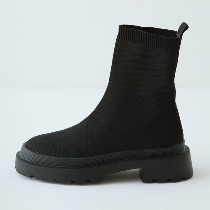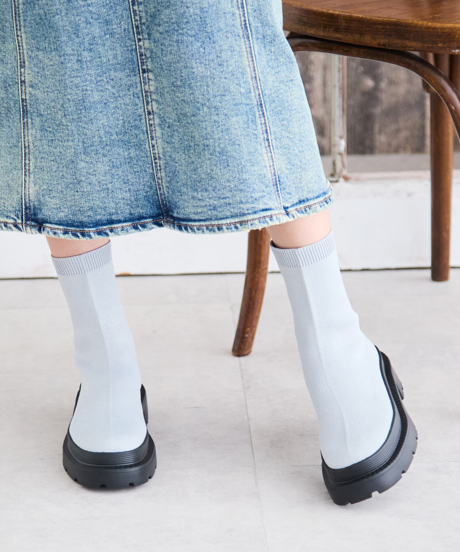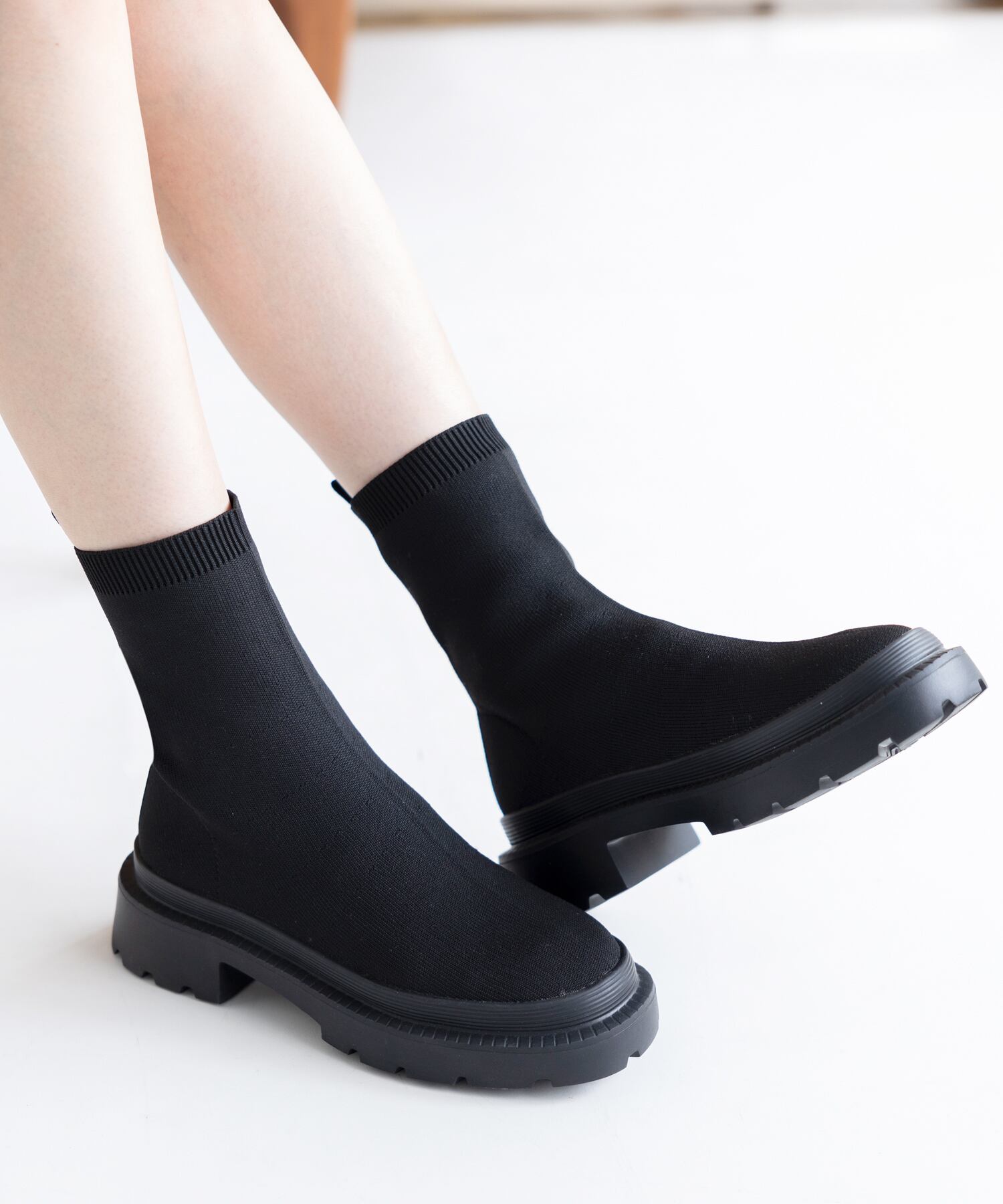 伸縮性のあるニット素材で足首まわりを細くすっきりと見せてくれるソックスブーツ。