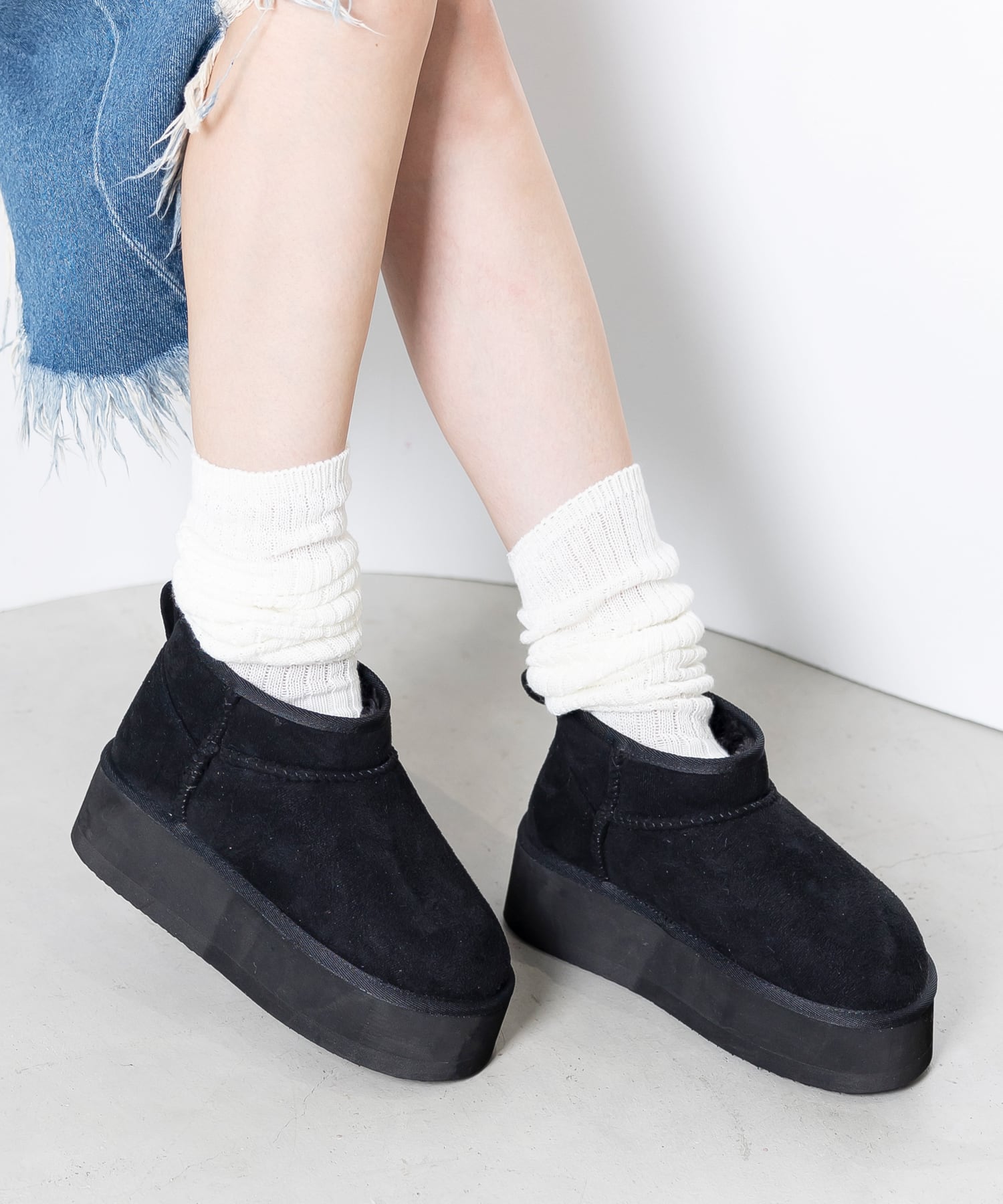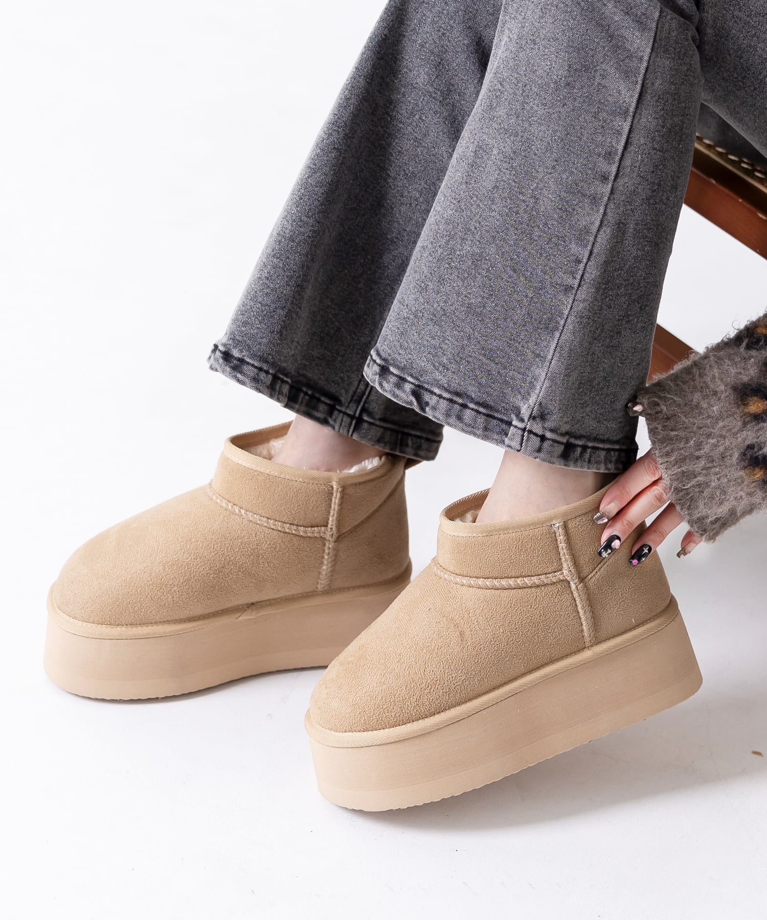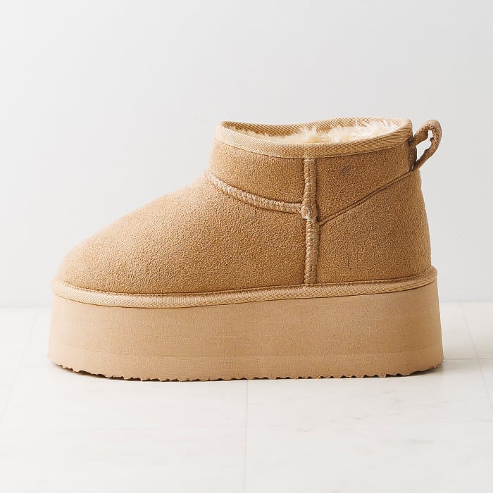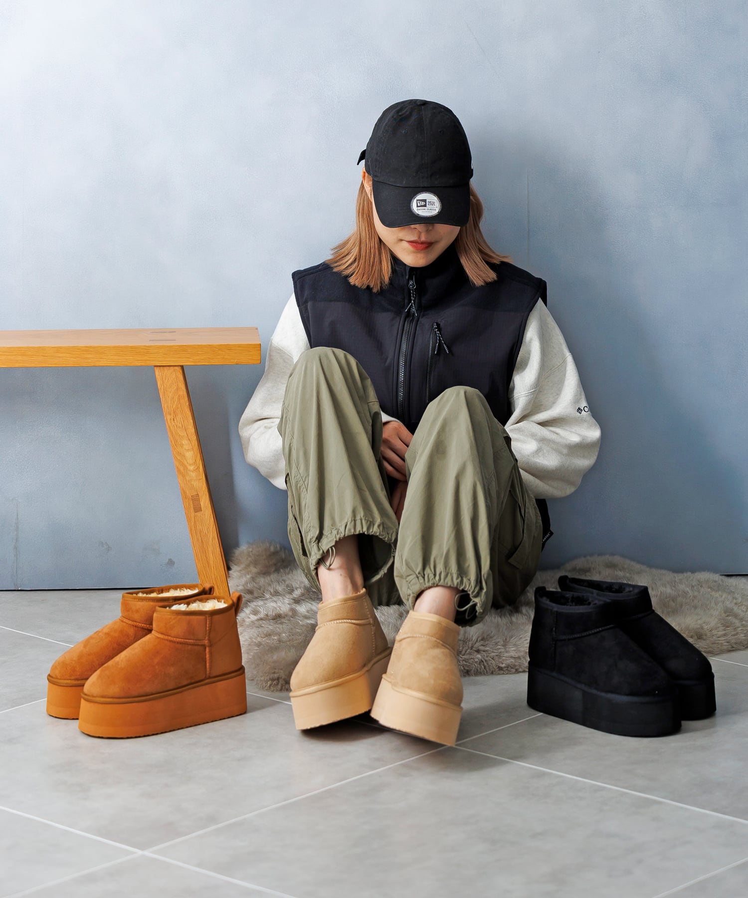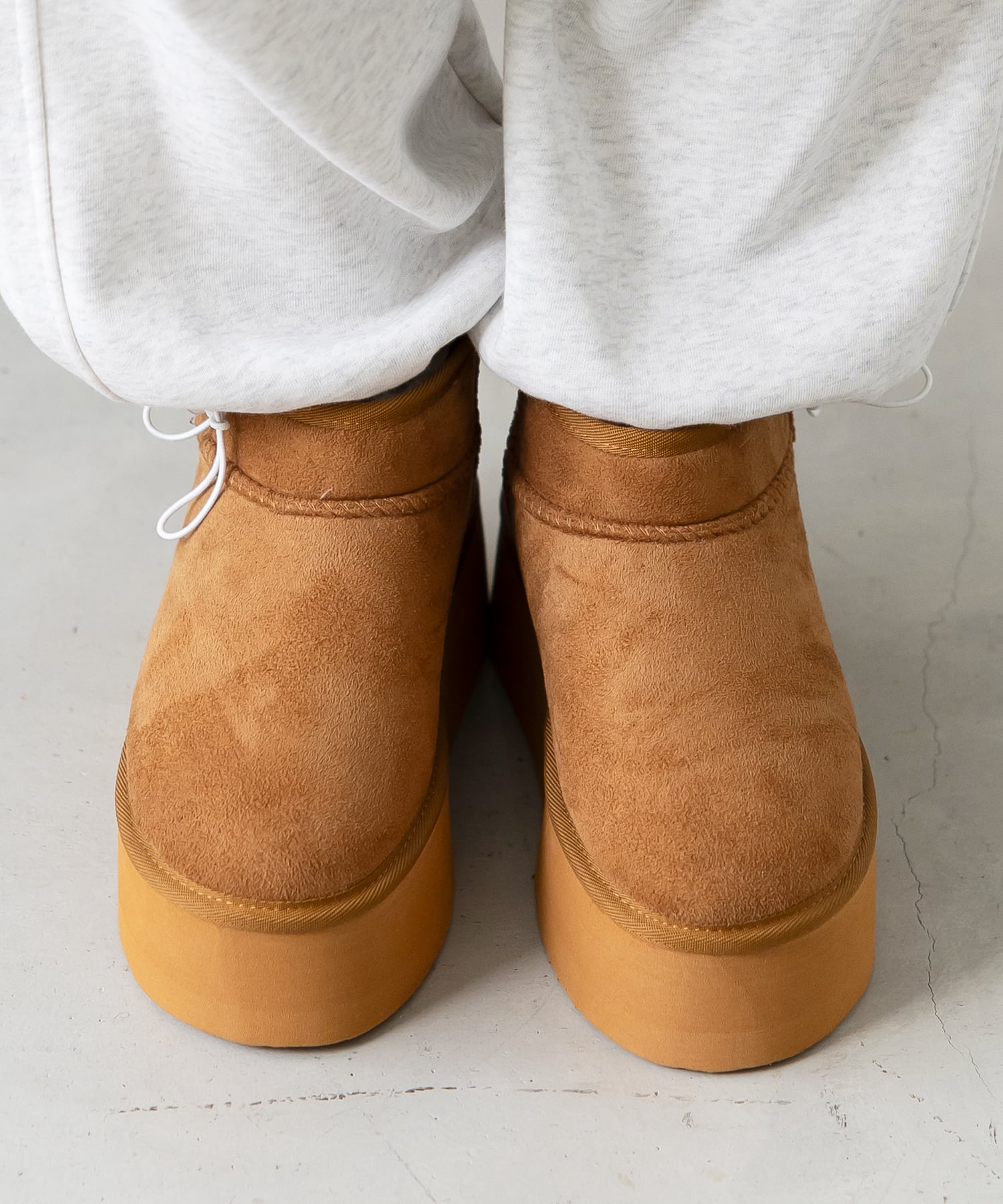 ファー素材でふかふかの履き心地、足元から温かくなれる厚底ムートンブーツ。
