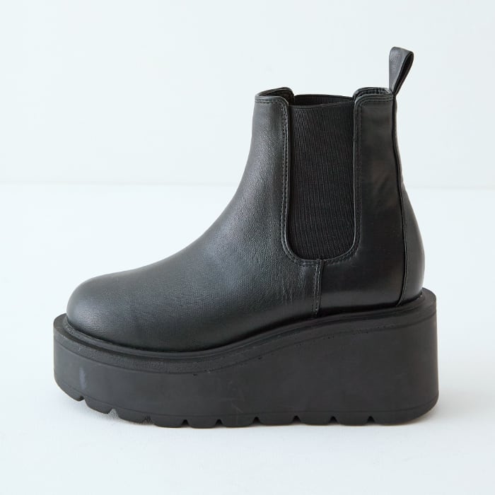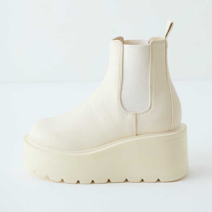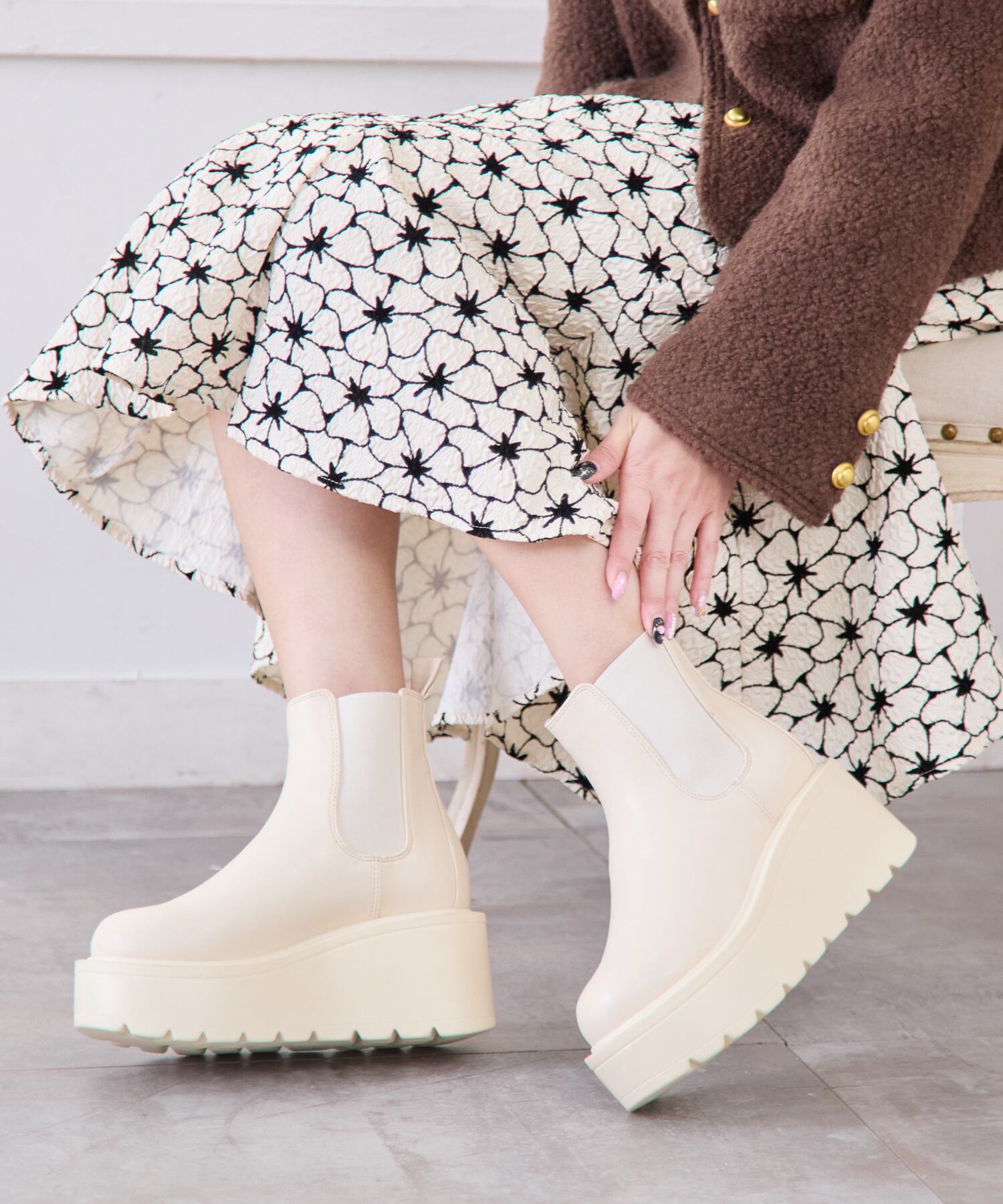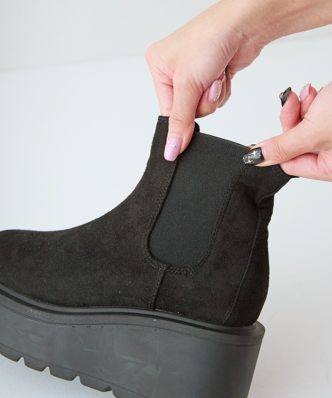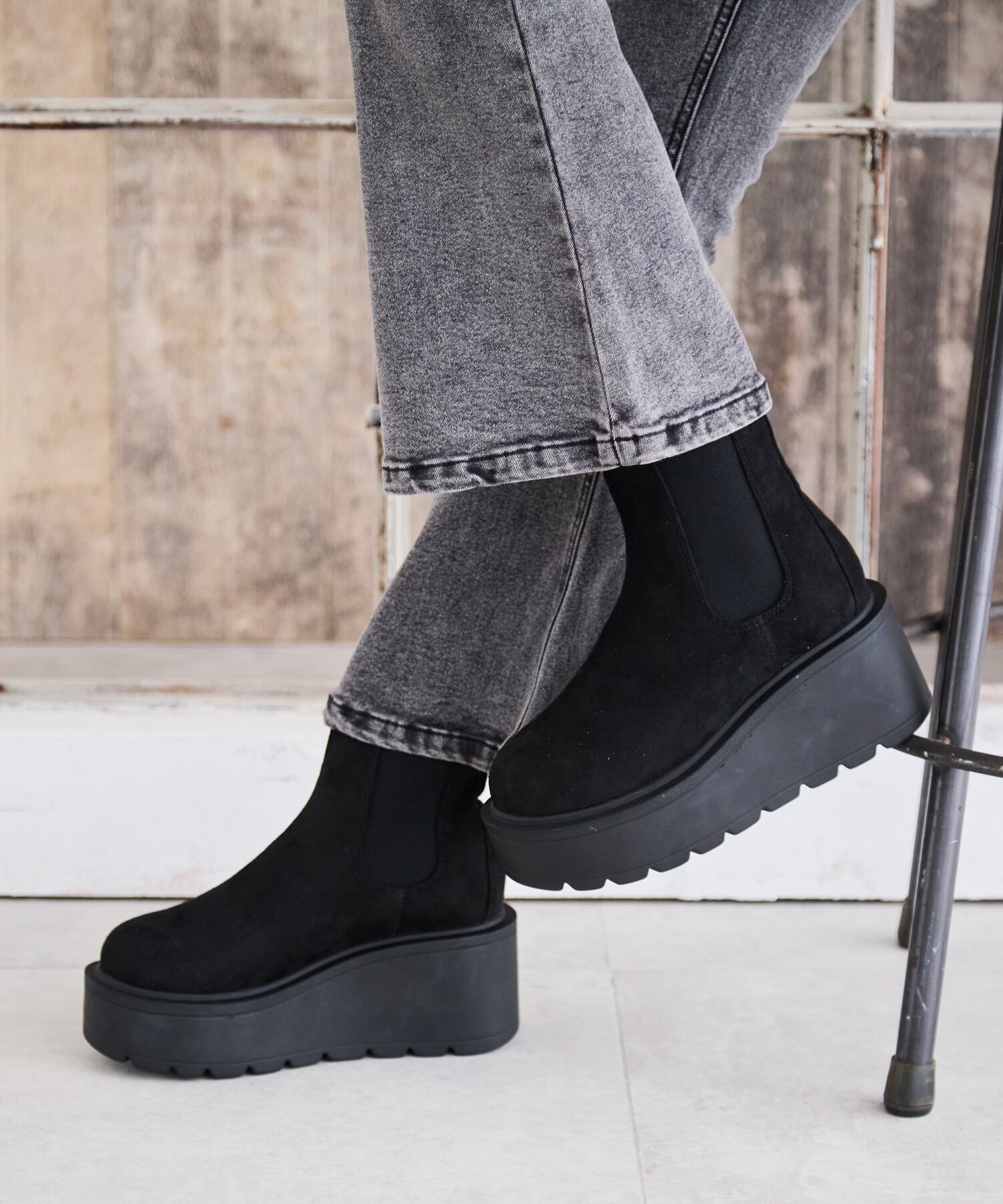 ボリュームソールとサイドゴアデザインでカジュアルな印象のショートブーツ。