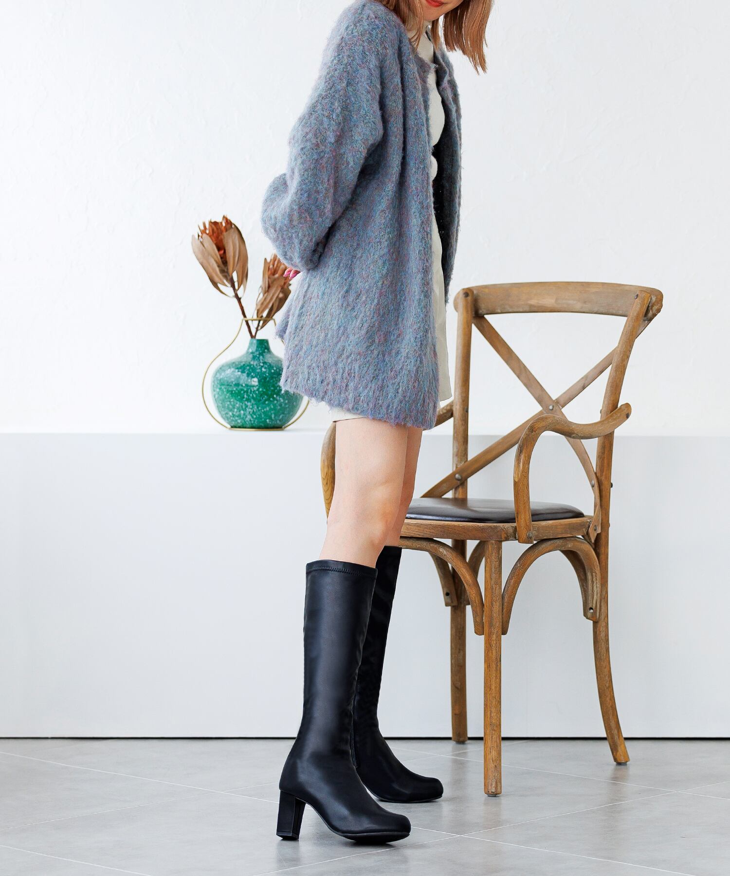 ストレッチ素材なので窮屈感なく快適な履き心地です。高すぎず、太さのあるヒールで安定感があり歩きやすいです。