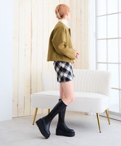 ボリューム感たっぷりの厚底ソールとストレッチ素材の筒周りですっきりしたシルエットが特徴のロングブーツ。