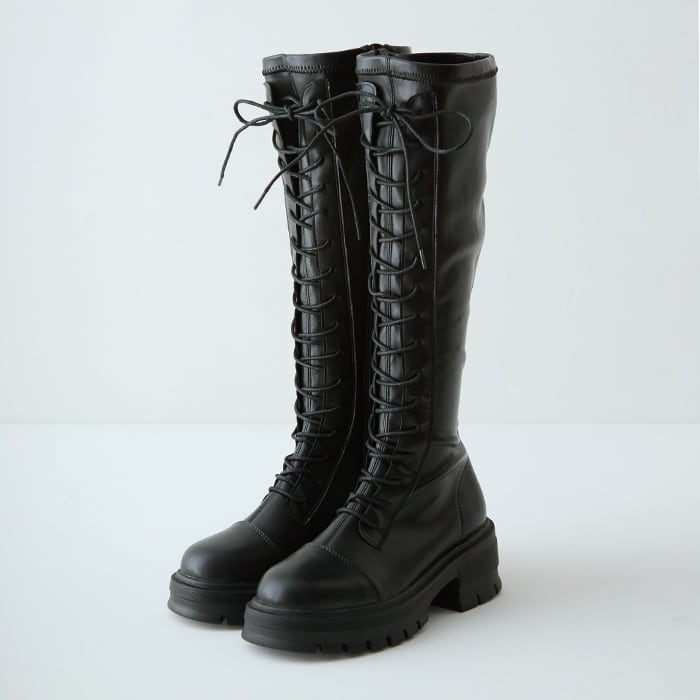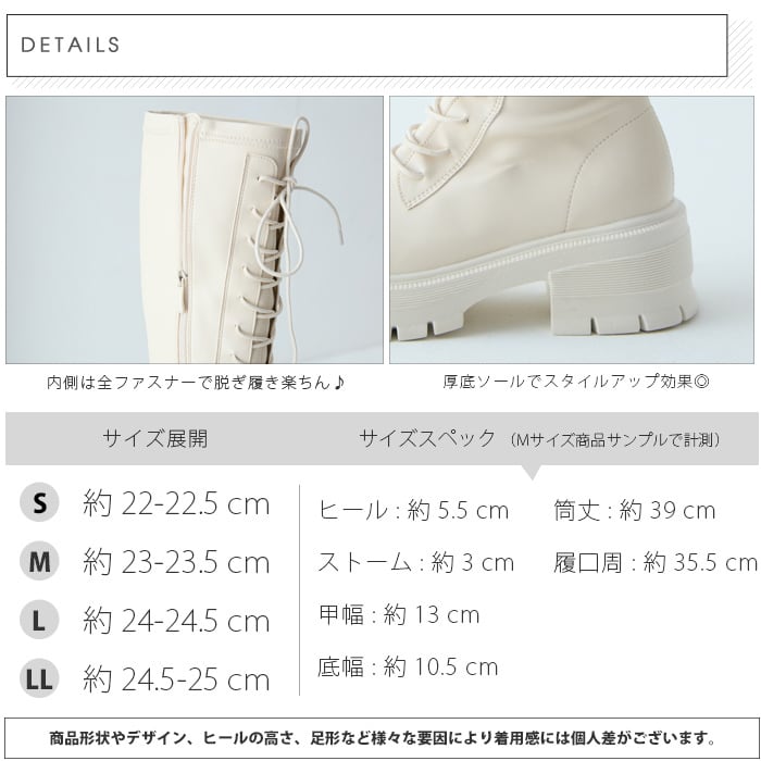 ※レースアップデザインは飾りです。内側全面ファスナー仕様になっています。