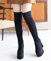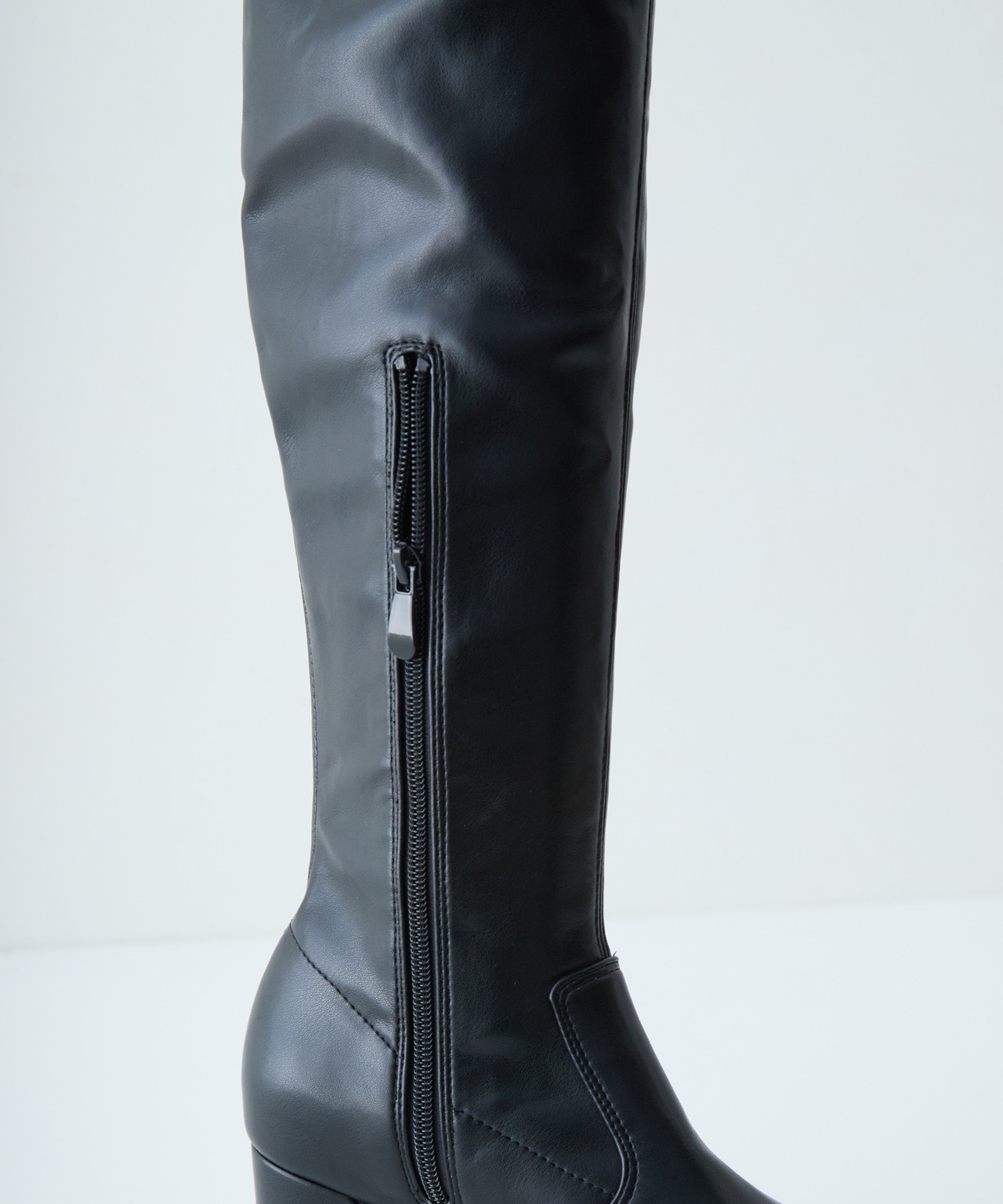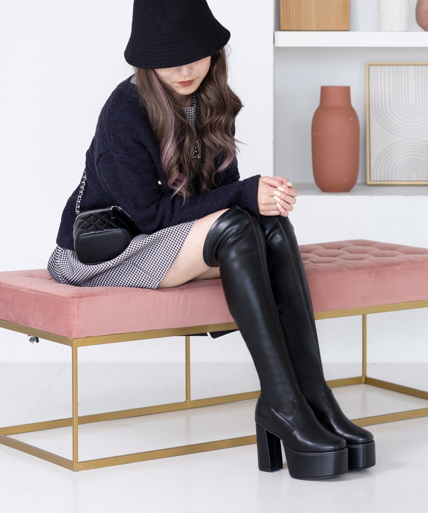 かなり高さのあるヒールですがつま先にも厚みがあるので負担なく履けます。ストレッチ素材なので太もも部分のすっきりして美脚に見えます。