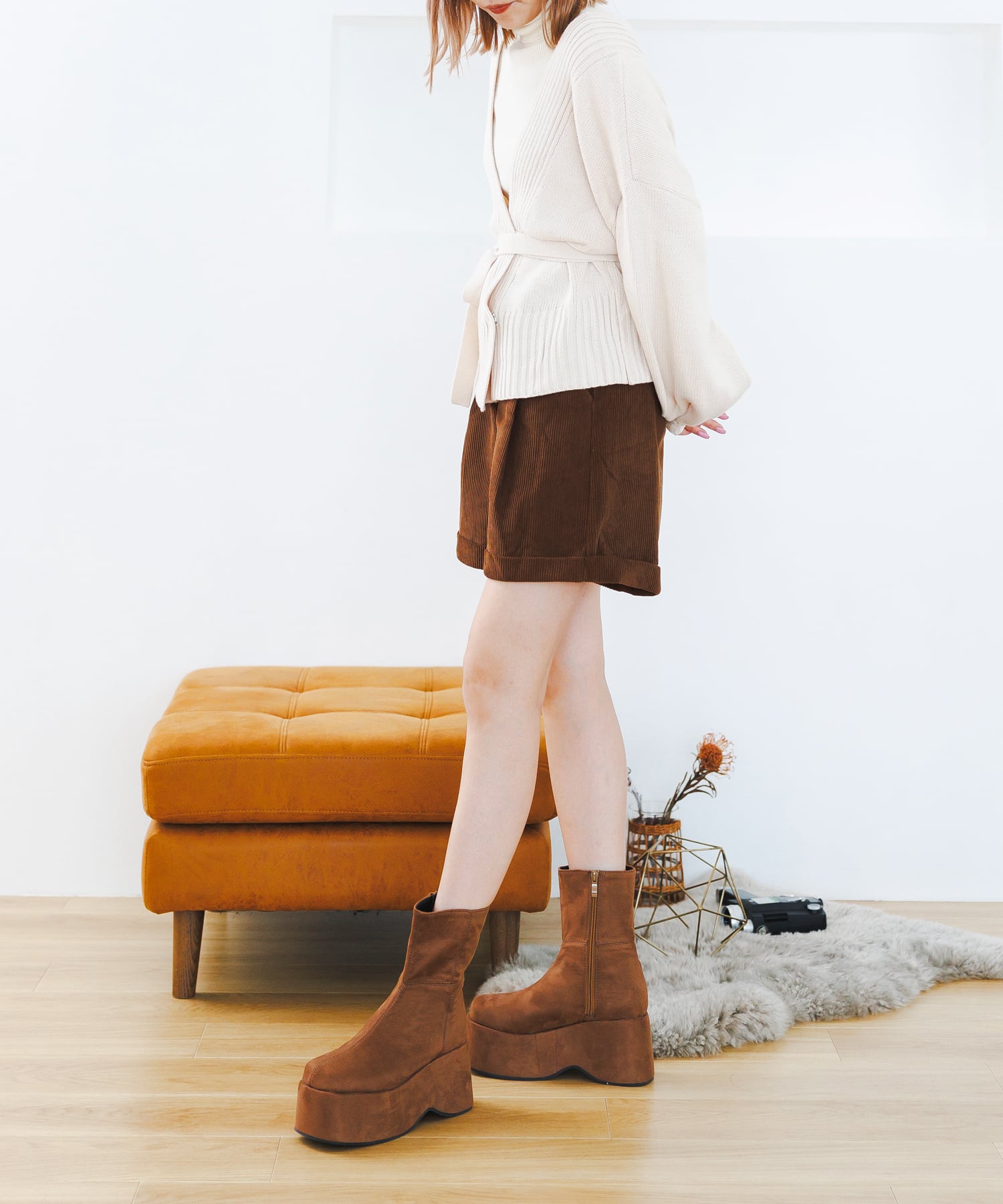 秋冬らしいスエード素材がポイントのショートブーツ。