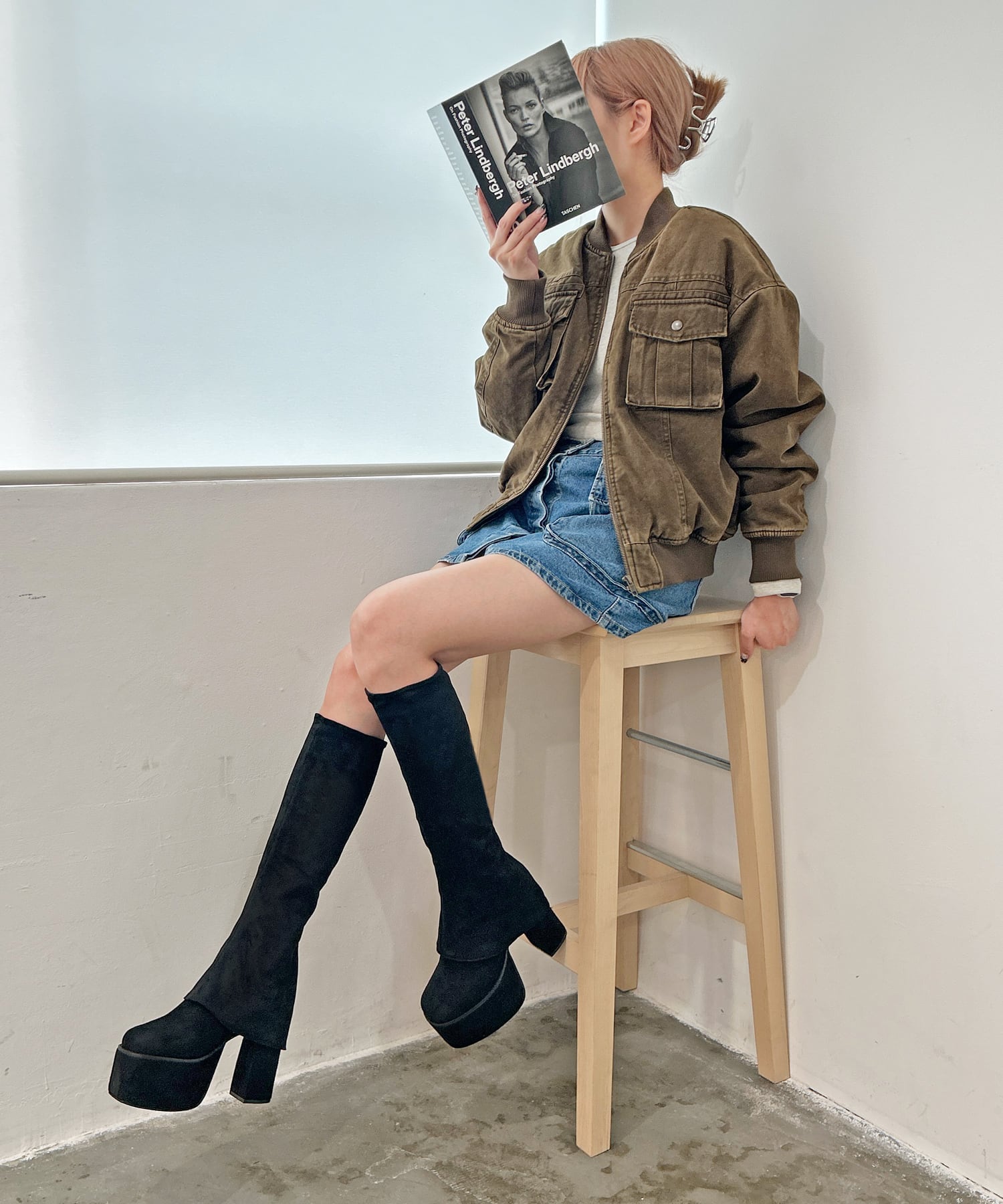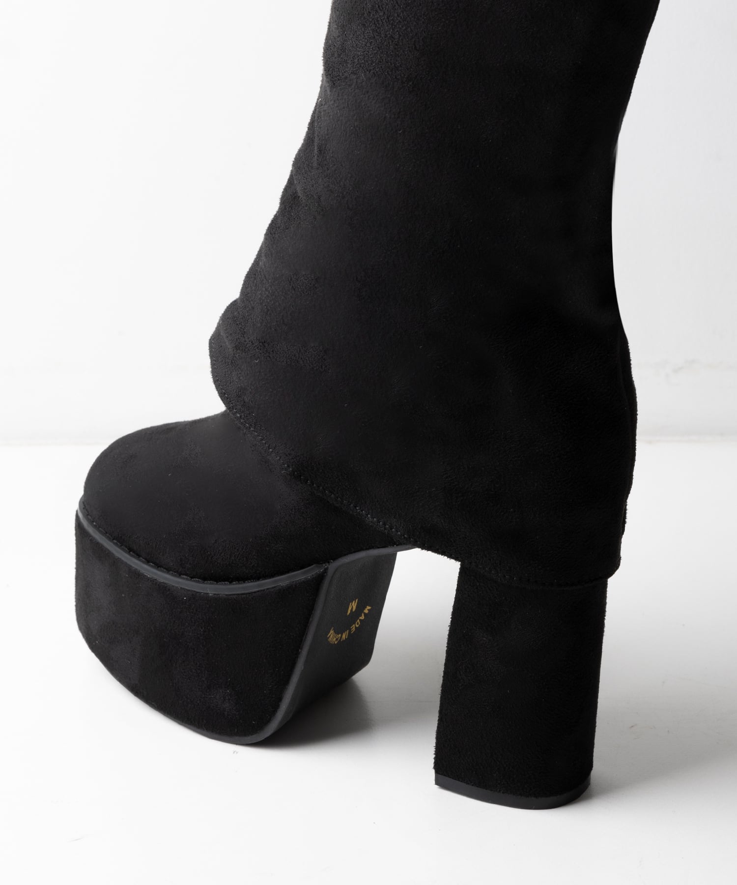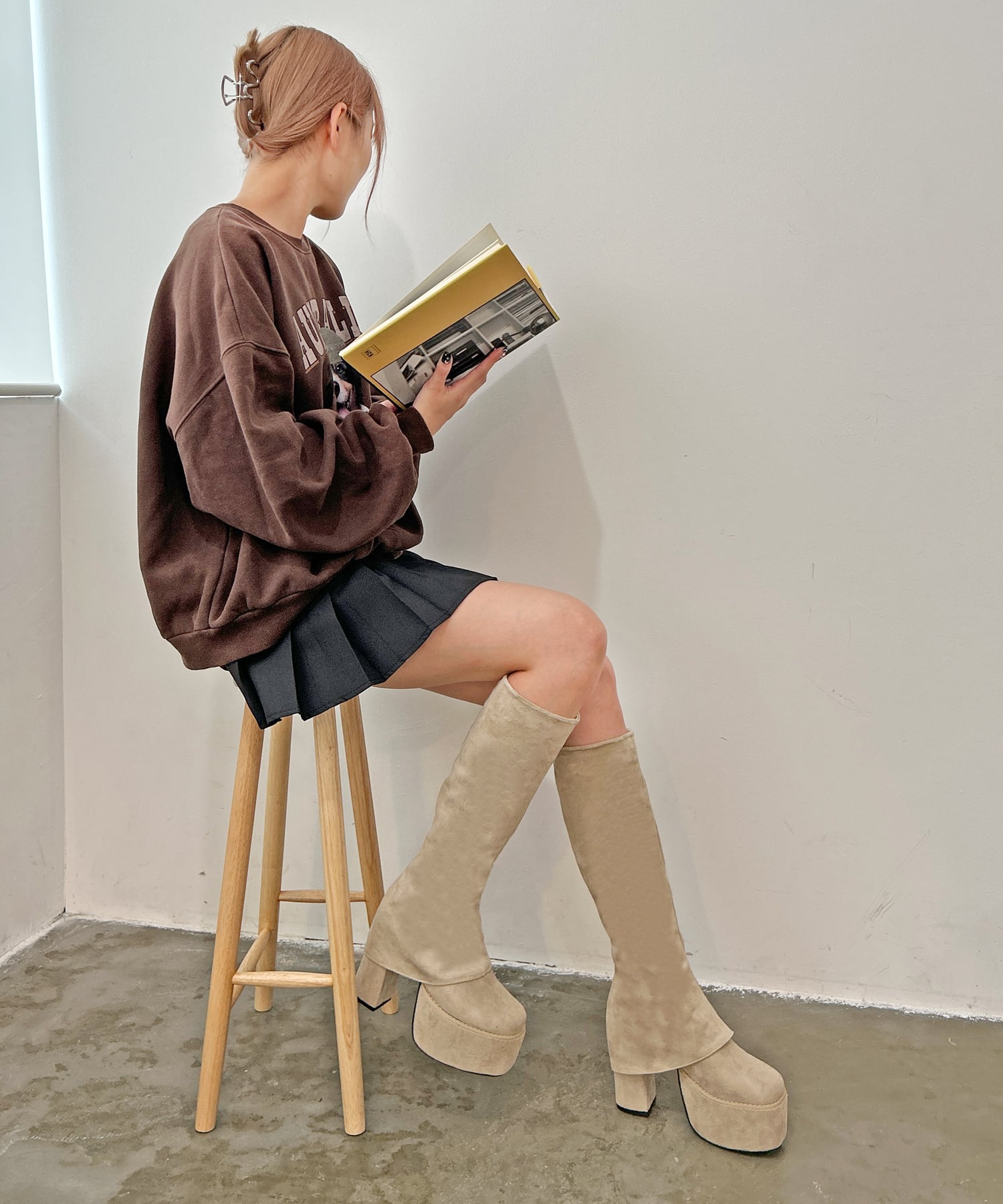 カバーデザインのアッパーと厚底プラットフォームデザインでスタイルアップが叶うトレンドブーツ。