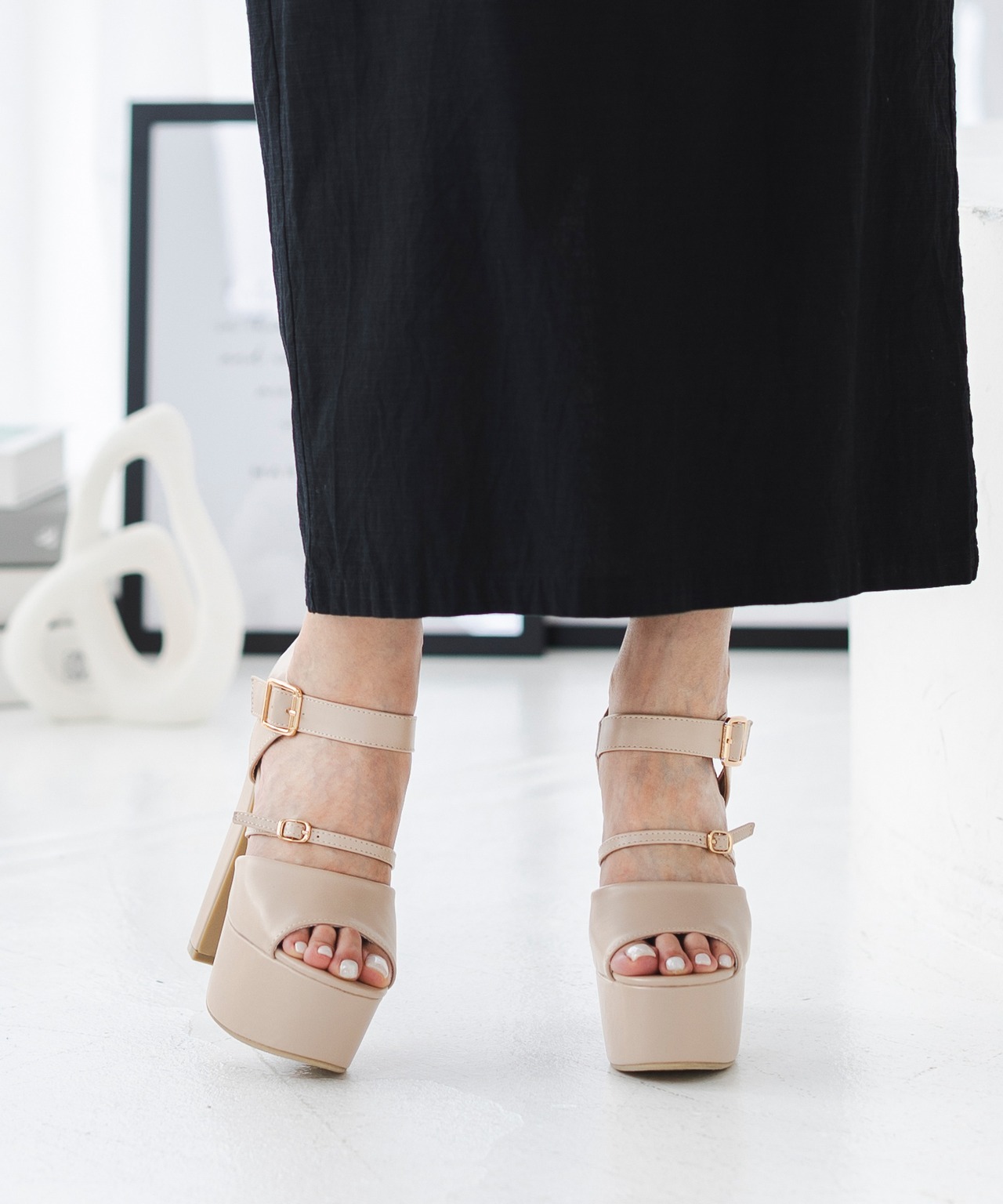 足首と甲ベルトの間に細めのベルトをプラスして、よりホールド感をアップ。