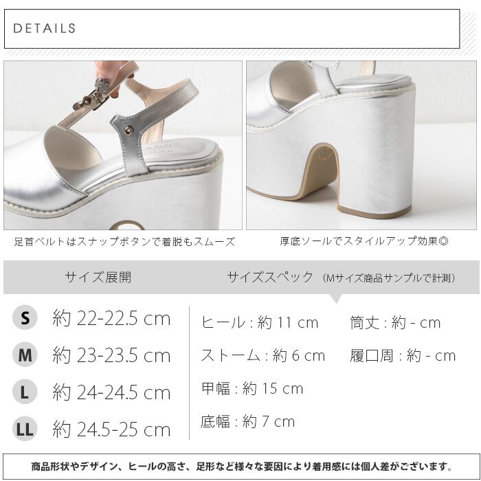 ボリュームのあるソールで美脚効果バツグン。甲ベルトは広めでホールド感があり歩きやすいのもポイント。