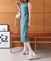 足首まである丈感で細見えするデザイン。